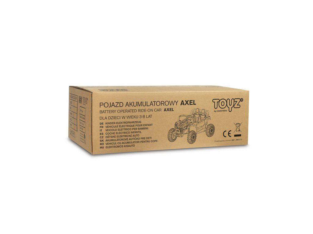 Az Axel egy egyedülálló, akkumulátoros quad, amely ötvözi a nagy teljesítményt a biztonsággal és a kényelemmel. Ez a terepjáró hihetetlen vezetési élményt nyújt, mivel összkerékhajtással rendelkezik. Mindegyik kerék egy 45 W-os motorral van felszerelve, aminek köszönhetően a quad képes megbirkózni a legkülönbözőbb terepviszonyokkal. A nagyméretű, kiváló minőségű EVA habból készült kerekek és a magas hasmagasság kiváló stabilitást és egyenetlenségek leküzdésének képességét garantálják. A jármű maximális terhelhetősége akár 30 kg is lehet, így ideális választás az aktív gyermekek számára.
