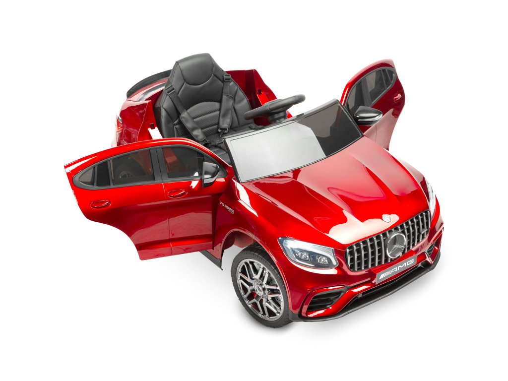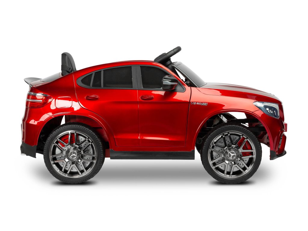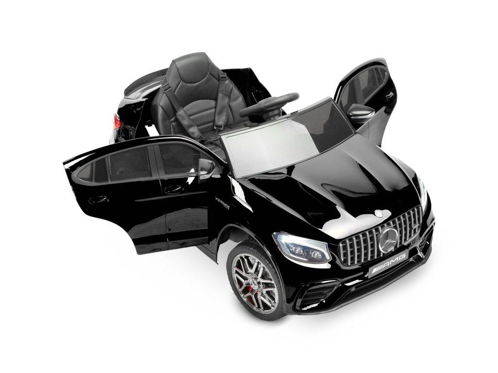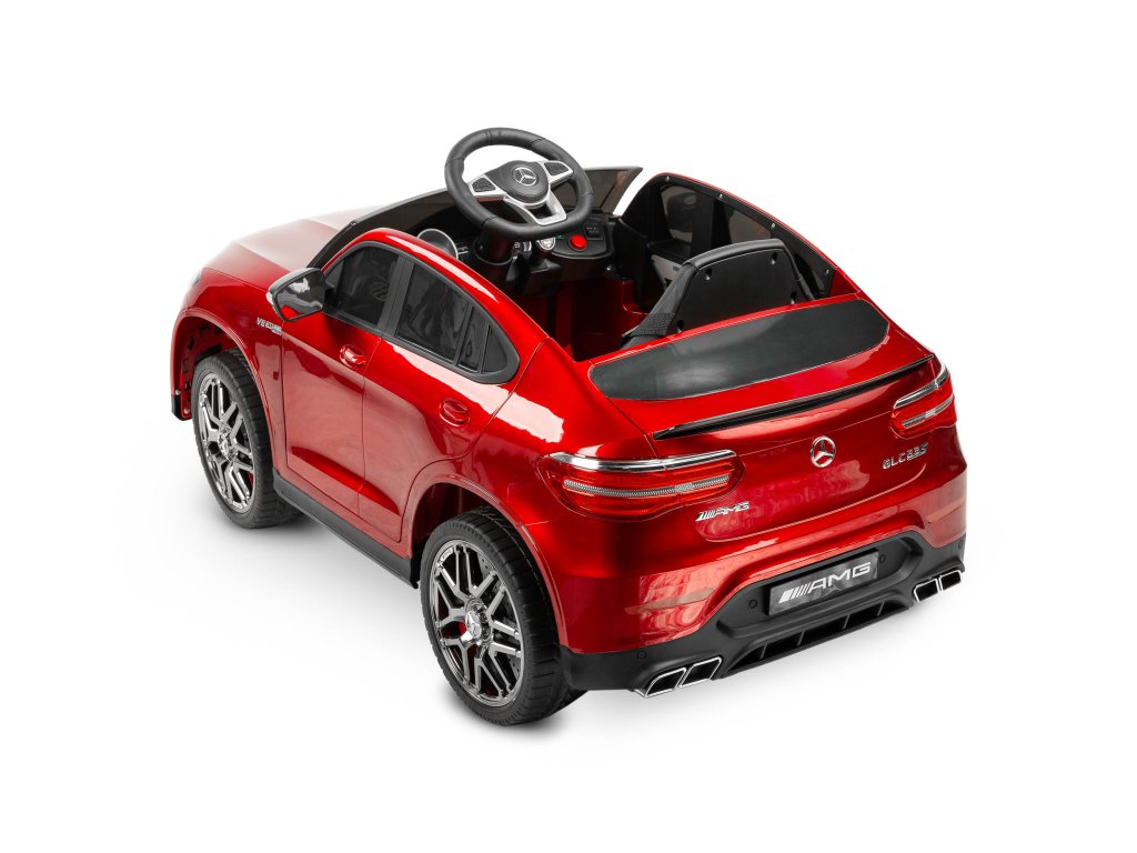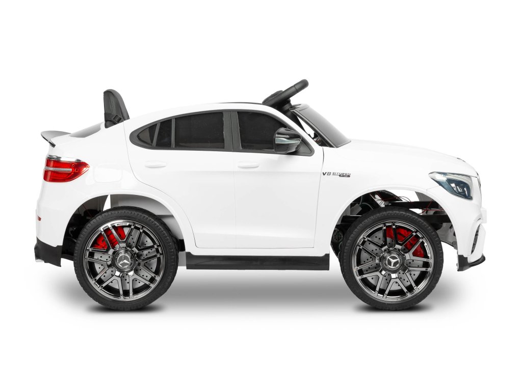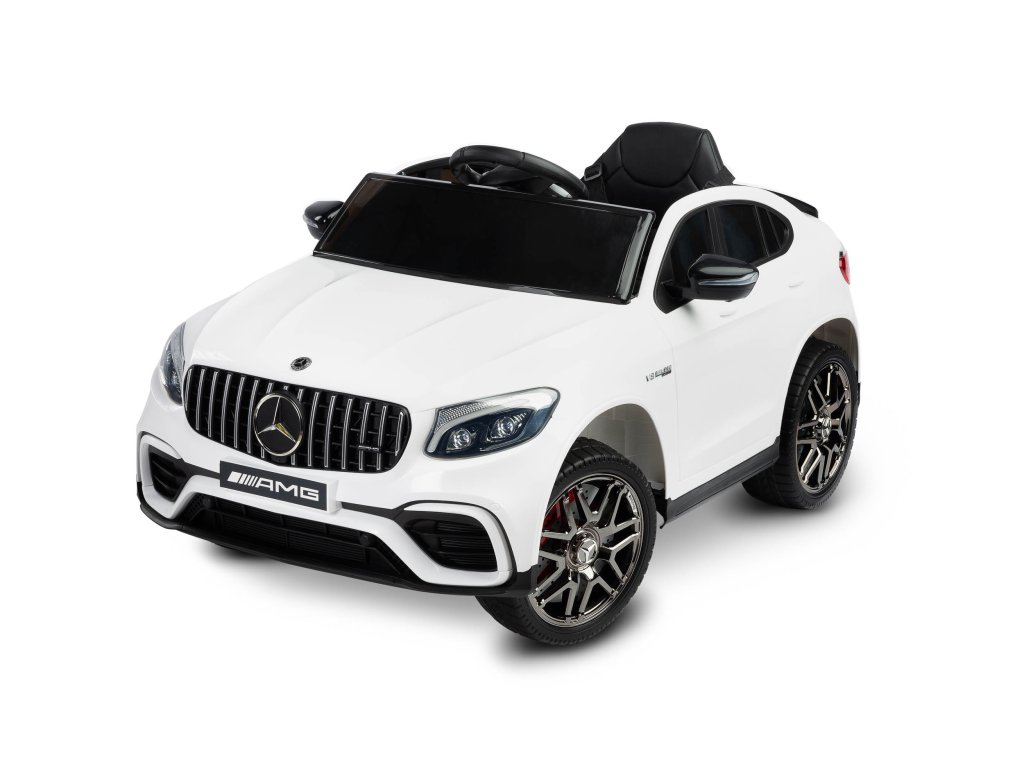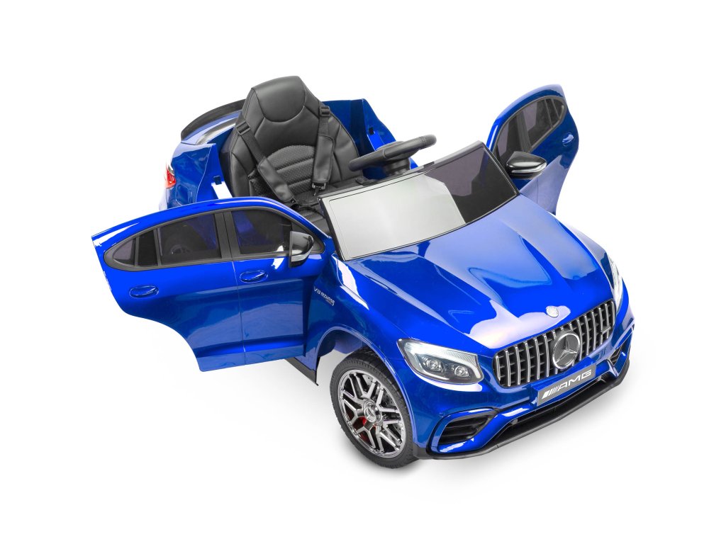 A Mercedes AMG GLC 63S egy licenccel rendelkező Toyz akkumulátortartó, amelyet a német márka kifejező és dinamikus SUV-járól mintáztak. A karosszéria jellegzetes vonalvezetése és a lámpák egyedi kialakítása bizonyítja egyediségét. Az ülés ökobőrrel borított, és 5 pontos biztonsági alappal rendelkezik, a karokon felülnyomással. Az utazás kényelmét a habszivacs kerekek biztosítják, a szülőknek tetszeni fognak a visszahúzható kerekek a könnyű hordozhatóság és a távirányító miatt. A Mercedes multimédiás panellel rendelkezik Bluetooth- és FM-rádióval, valamint hangokat aktiváló gombokkal ellátott kormánykerék. Meghajtásáról 2 db 45 W-os motor és egy 12V 7Ah akkumulátor gondoskodik.