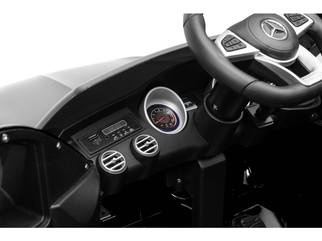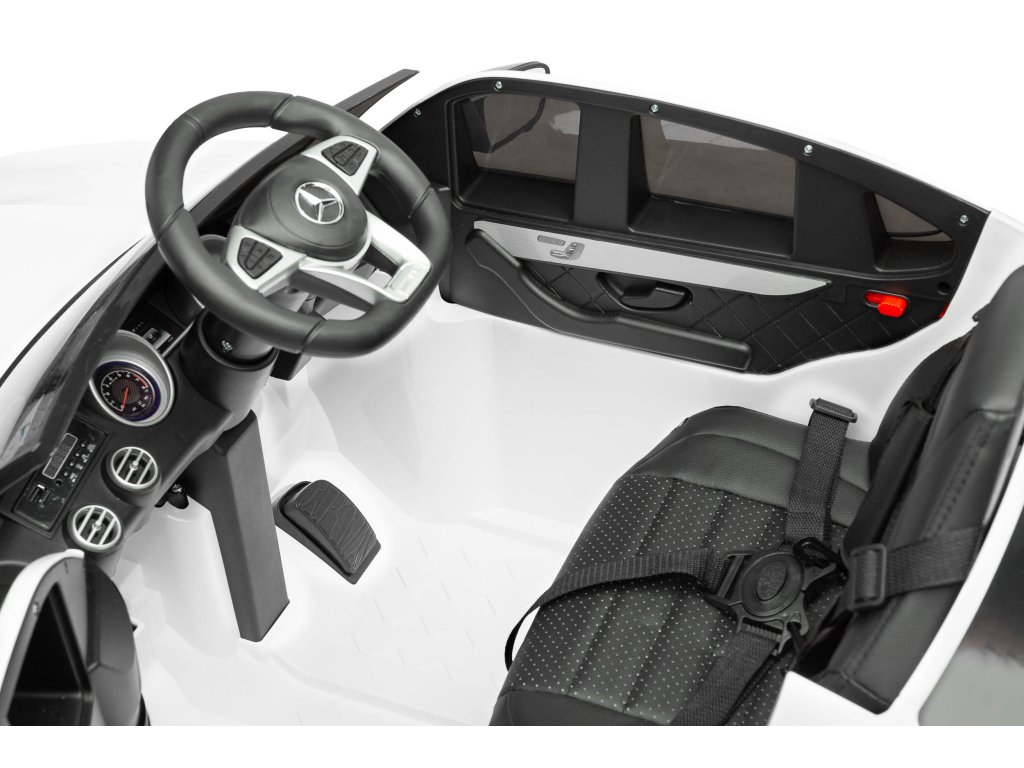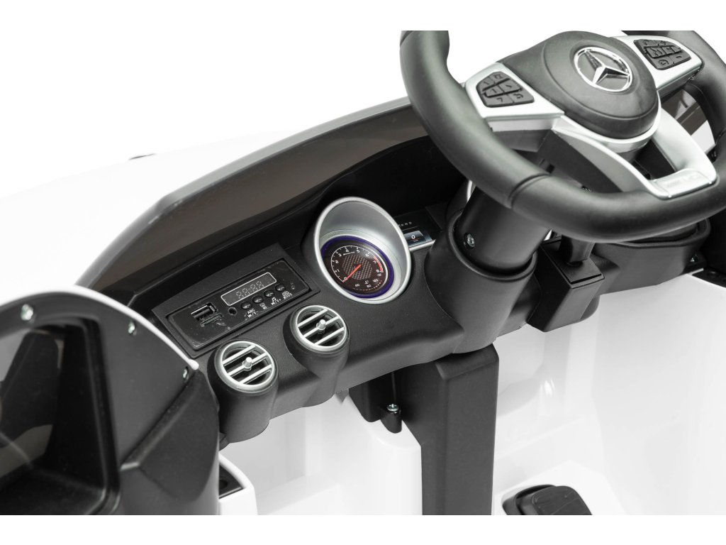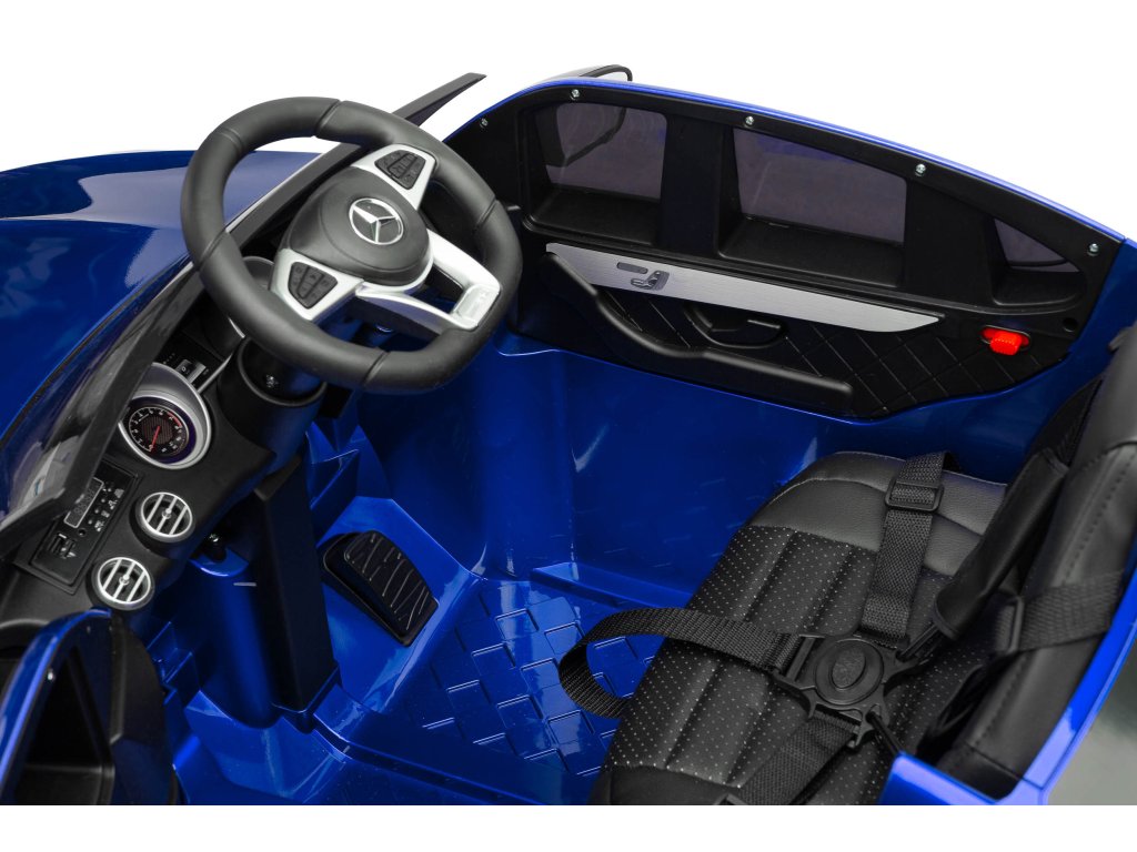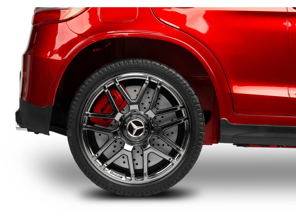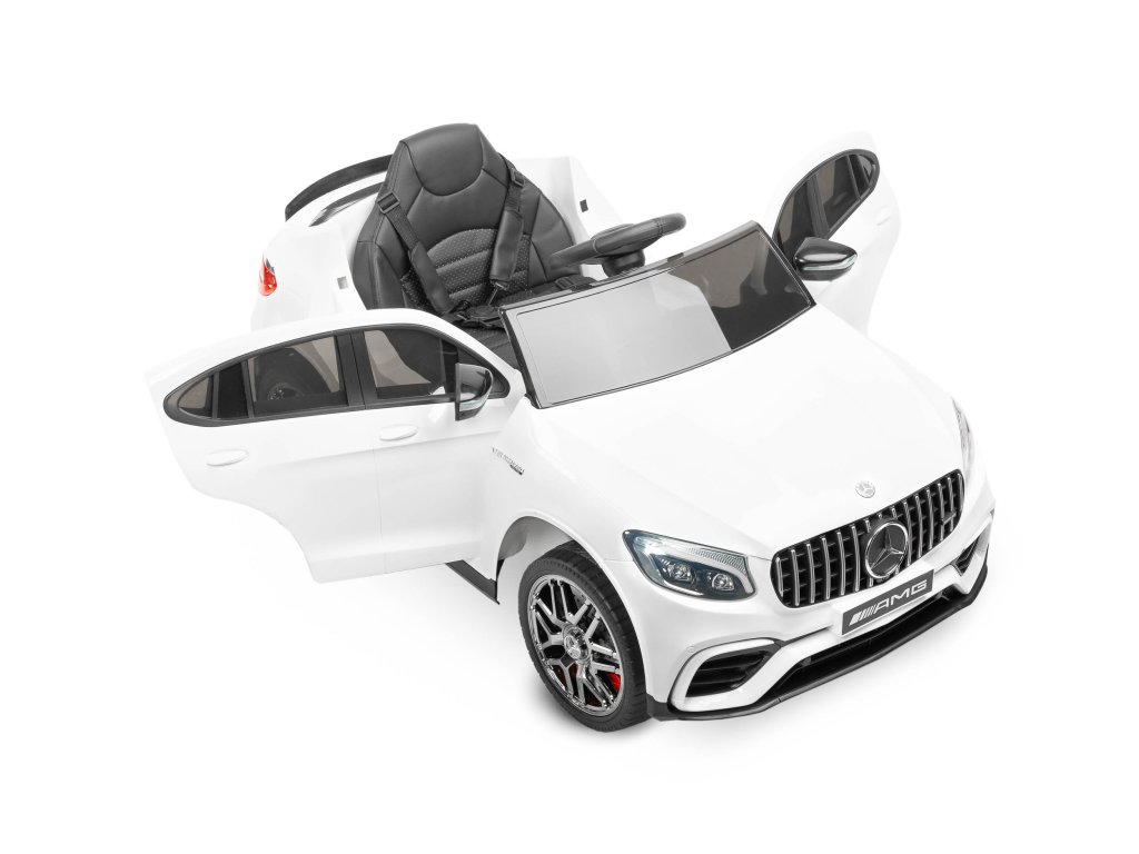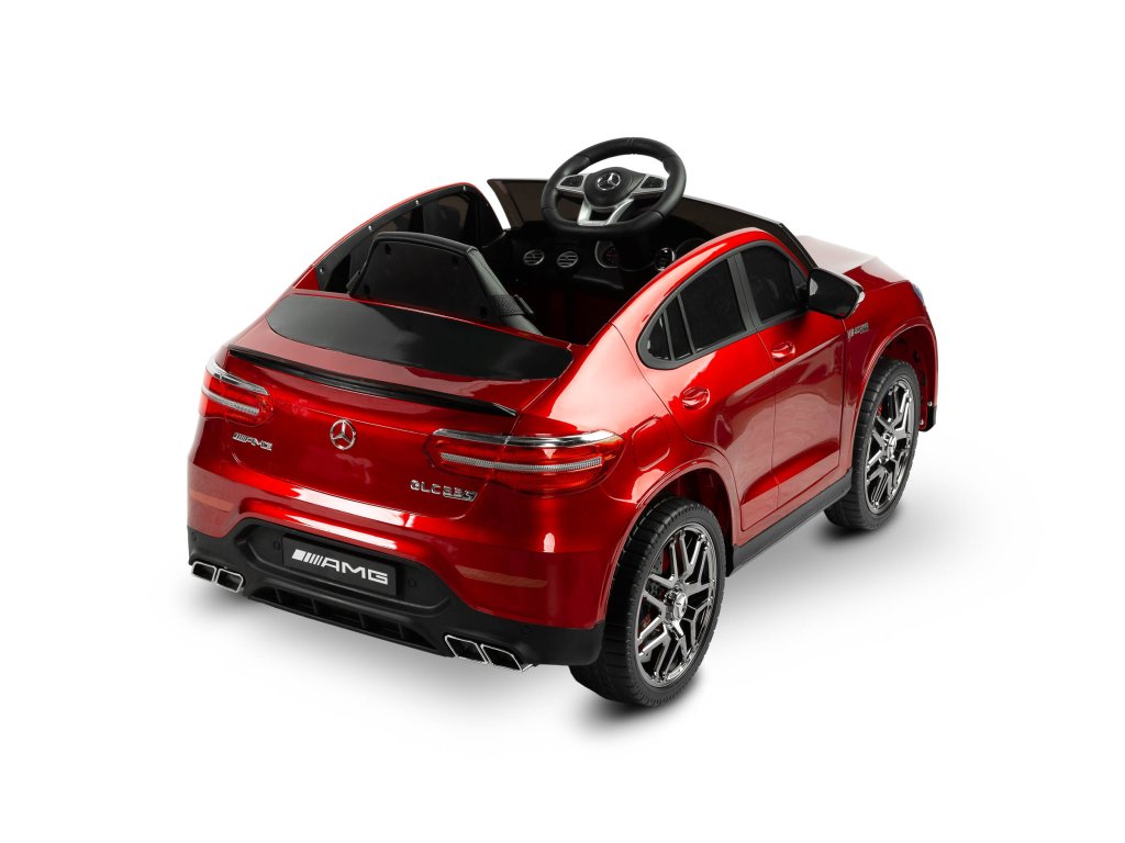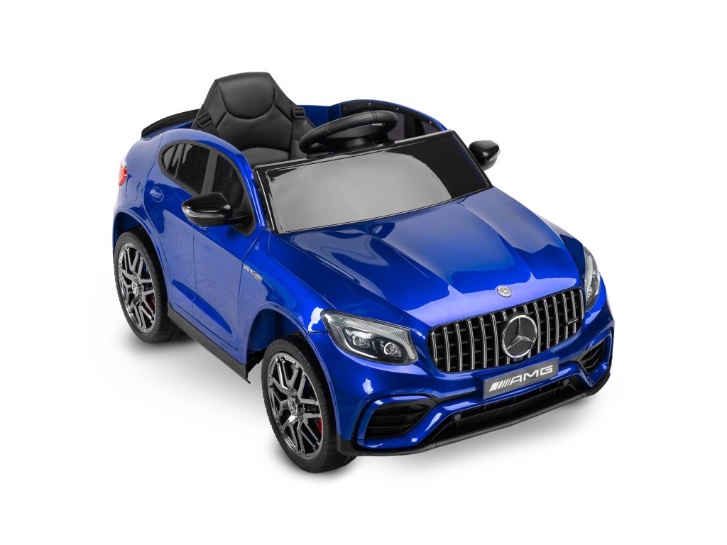 A Mercedes AMG GLC 63S egy licenccel rendelkező Toyz akkumulátortartó, amelyet a német márka kifejező és dinamikus SUV-járól mintáztak. A karosszéria jellegzetes vonalvezetése és a lámpák egyedi kialakítása bizonyítja egyediségét. Az ülés ökobőrrel borított, és 5 pontos biztonsági alappal rendelkezik, a karokon felülnyomással. Az utazás kényelmét a habszivacs kerekek biztosítják, a szülőknek tetszeni fognak a visszahúzható kerekek a könnyű hordozhatóság és a távirányító miatt. A Mercedes multimédiás panellel rendelkezik Bluetooth- és FM-rádióval, valamint hangokat aktiváló gombokkal ellátott kormánykerék. Meghajtásáról 2 db 45 W-os motor és egy 12V 7Ah akkumulátor gondoskodik.