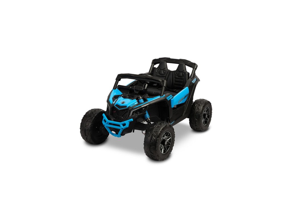 A Maverick egy akkumulátoros quad/buggy, szokatlanul nagy teljesítménnyel . Összkerékhajtással van felszerelve , amelyek mindegyikét egy 200 W-os motor hajtja! Ez biztosítja, hogy a jármű még a legnehezebb útvonalakat is képes kezelni. A nagy teljesítményű 24V/7Ah akkumulátornak köszönhetően a gyerekek élvezni fogják a hosszú utazást , a feszültségjelző pedig emlékezteti Önt, amikor a járművet fel kell tölteni. A Maverick modern multimédiás panellel rendelkezik LED fényhatással. USB, AUX és Bluetooth bemenetekkel , valamint FM rádióval van felszerelve . Akár 30 kg-os maximális terheléssel ez a terepjáró garantálja a kényelmet és a biztonságos vezetést. A fokozott biztonságot a medenceöv , a lassú indítás funkció és az automatikus fékezés biztosítja . Ezenkívül a távirányítónak köszönhetően a szülők séta közben is teljes mértékben irányíthatják a járművet . A Maverick EVA hab kerekekkel , hátsó lengéscsillapítókkal és öko-bőr üléssel is rendelkezik. A tökéletes jármű az igazi kalandorok számára! Főbb jellemzők: