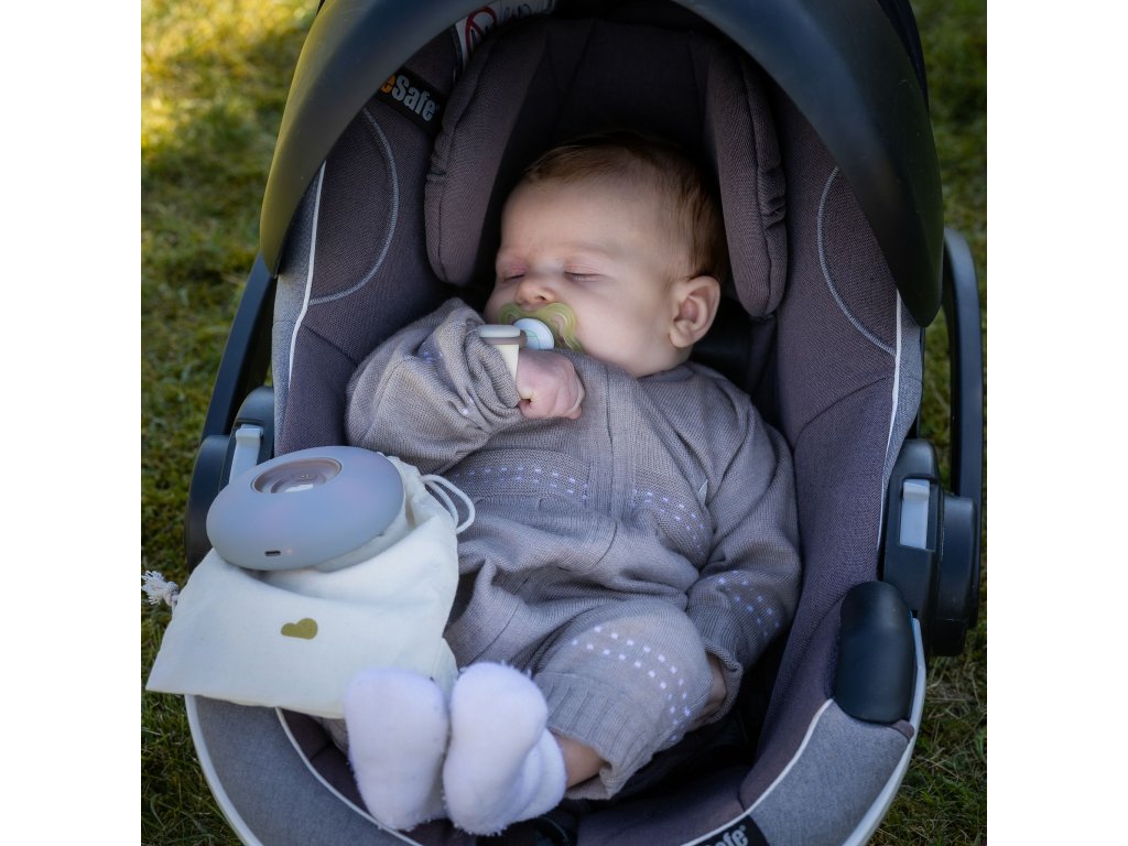 Mindig kapcsolatban/ Az alapban és a karkötőben található elemnek, valamint a beépített 4G technológiának köszönhetően mindig elérhetőek az egészségügyi adatok és az értesítések, amikor a baba sír.