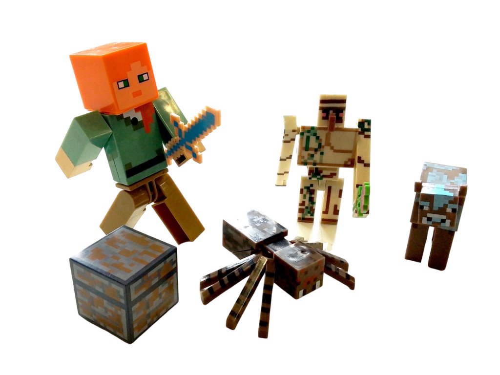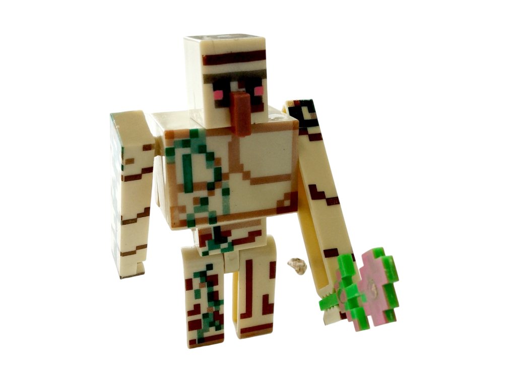 Az ábrák között találjuk Vas gólem, erős a falusiak védelmezője, apók, veszélyes ellenfél, aki a sötétben lapulva. Ezen kívül a készlet tartalmaz egy kis Mooshroom gombás tehén, amely egy eredeti elemet ad a játékhoz mezőgazdasági. Minden figura hűségesen van megtervezve pixel stílusú játék és abból készül tartós műanyag, amely biztosítjahosszú élet játék közben.