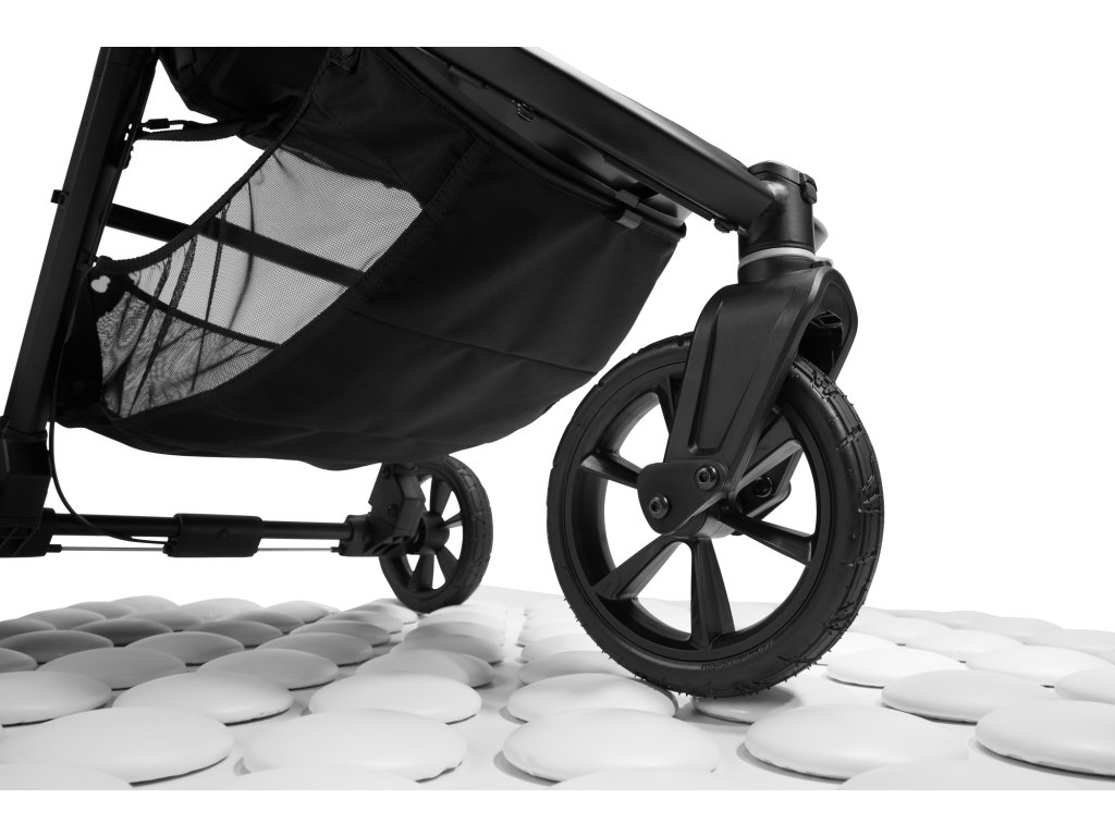 A "Forever-Air" rendszerrel ellátott gumi felfüggesztésű kerekek sima, kompromisszumok nélküli utazást biztosítanak a babakocsinak és Önnek bármilyen terepen.