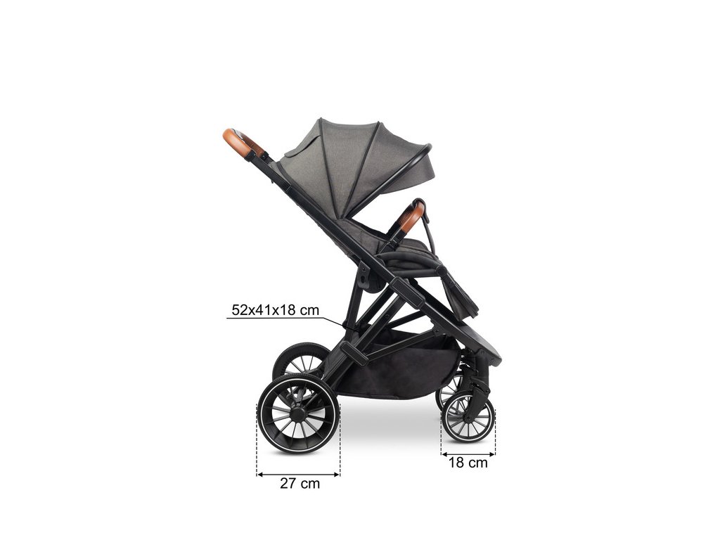 A Caretero Ratio babakocsi elegáns és funkcionális modell, amely a kiváló minőségű kidolgozást maximális kényelemmel kombinálja a felhasználók számára. Könnyű, de erős szerkezetének köszönhetően könnyen kezelhető mind a városban, mind egyenetlen terepen, így praktikus választás minden alkalomra.