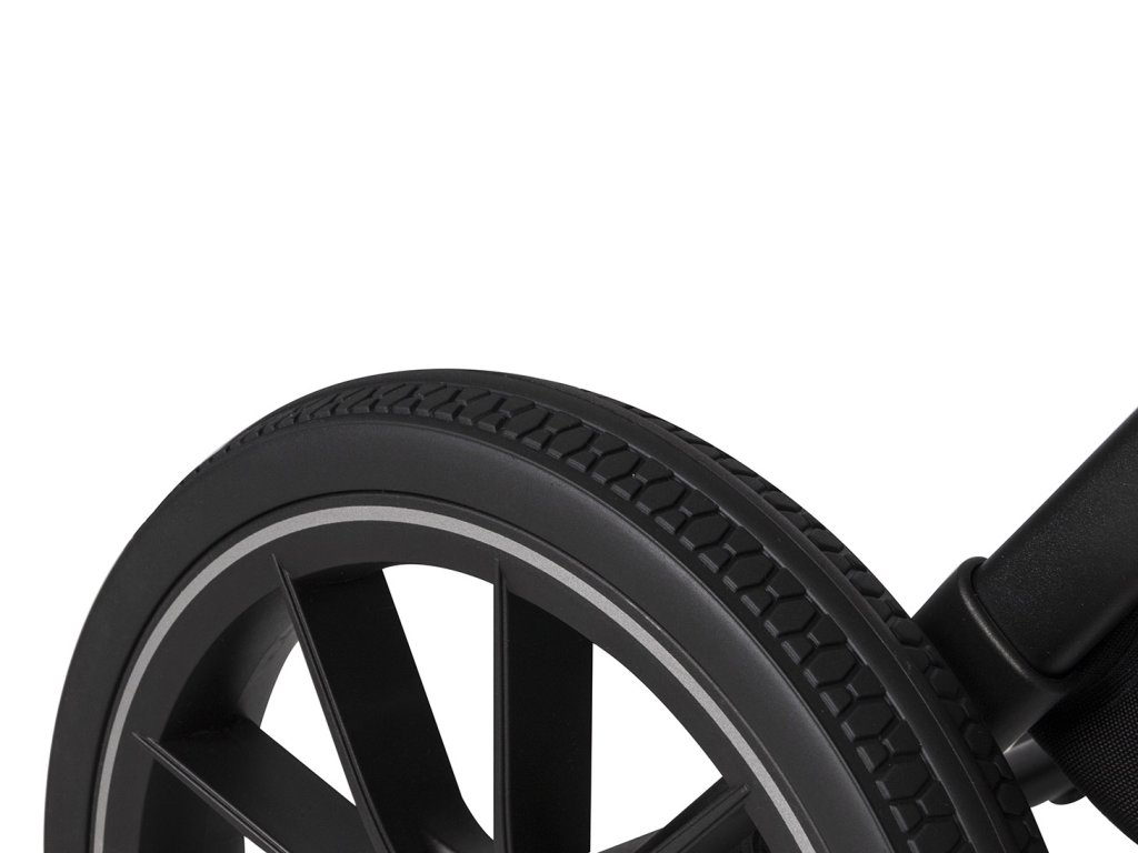 Funkcionalitás és kényelem: A babakocsit úgy tervezték, hogy maximális kényelmet biztosítson mind a szülők, mind a gyermek számára. Kiváló felfüggesztésének és nagy gumikerekeinek köszönhetően bármilyen terepen, beleértve a havat is, alkalmas. A kerekek karbantartásmentesek az univerzális futófelületű, tömlő nélküli gumiabroncsoknak köszönhetően.