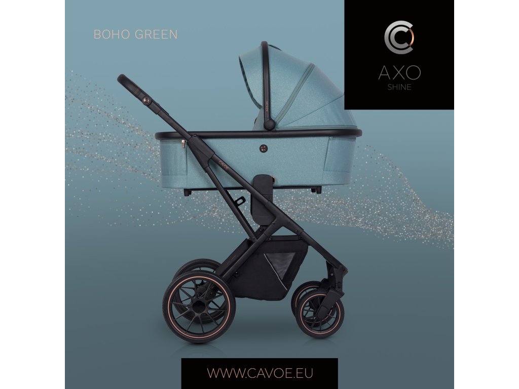 Márka CAVOE A legmagasabb minőségű kidolgozást ötvözi a modern stílussal, amelyet a legújabb párizsi divatirányzatok ihlettek. Cavoe Axo Shine a népszerű Axo modell legújabb változata, lágy pasztellszínekkel és réz kiemelésekkel díszített anyagokkal, ami a "Shine" kollekció nevét is adja. Ez a babakocsi négy divatos színben kapható: Pezsgő (arany bézs), Flamingó (lazac rózsaszín), Bohém zöld (kerámia zöld) és Francia szürke (szürke árnyalatai).