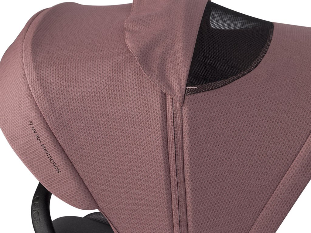 A Cavoe tervezőit a párizsi elegancia ihlette, amelyet a merész vonalak, a luxus anyagok és a gyönyörű Desert Rose szín tükröz. A fogantyú és a biztonsági rúd kiváló minőségű eko bőrrel van bevonva, ami egy csipetnyi luxust kölcsönöz a babakocsinak.
