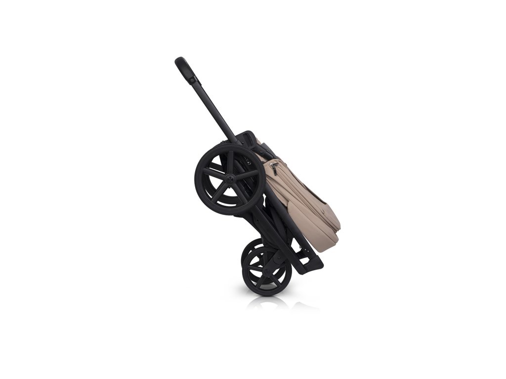 - Teleszkópos összecsukórendszer: A babakocsi könnyen összecsukható egy kézzel, miközben mind a négy keréken állva marad, így könnyen hordozható és tárolható.