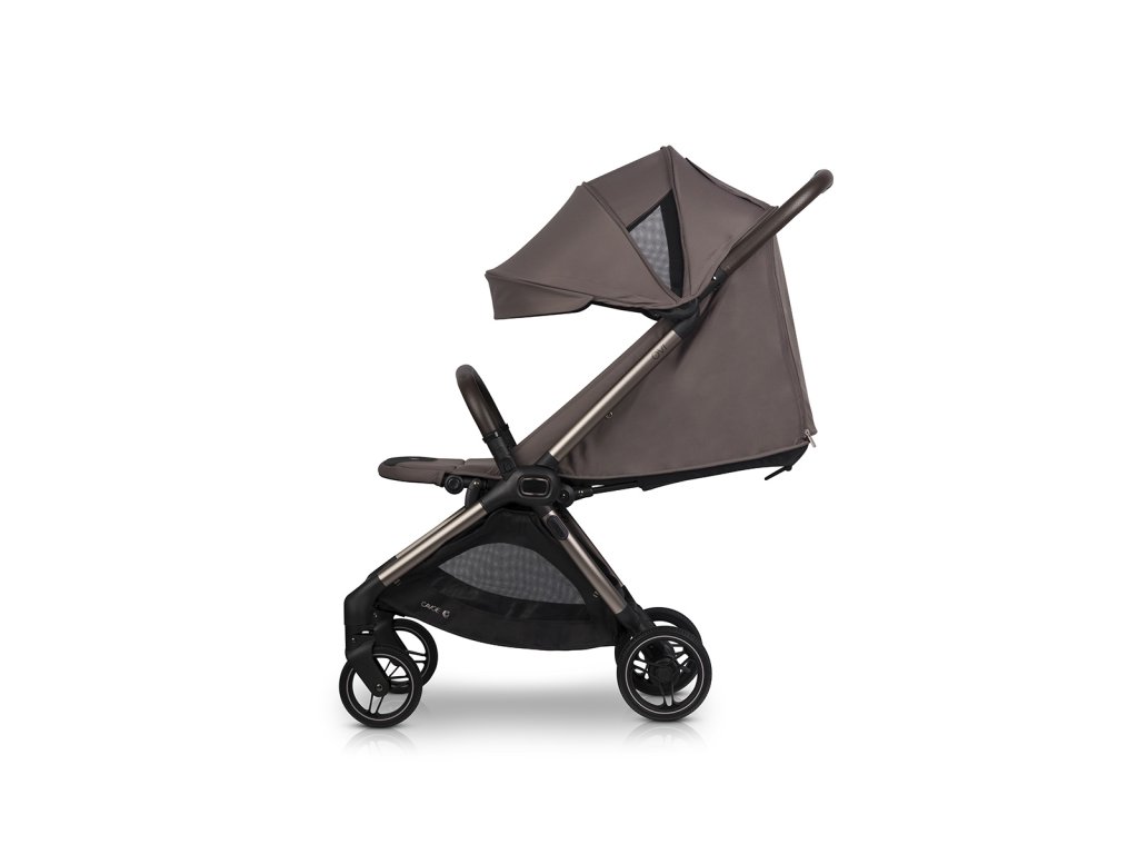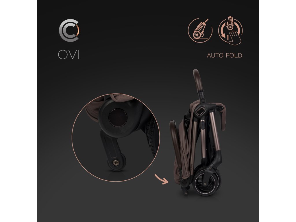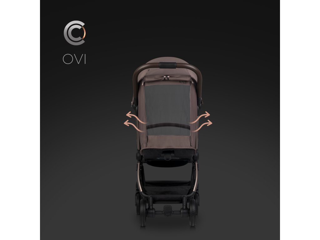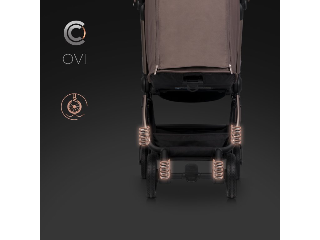 A CAVOE OVI egy termék prémium osztályok, amely még a legigényesebb szülők elvárásait is kielégíti. A keret fém elemei eloxált elegáns barna-pezsgő színben, amely nemcsak luxus megjelenést kölcsönöz a babakocsinak, hanem jelentősen növeli a karcállóságot a hagyományos festékfelületekhez képest.