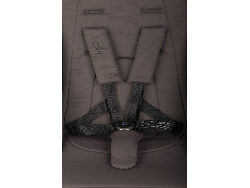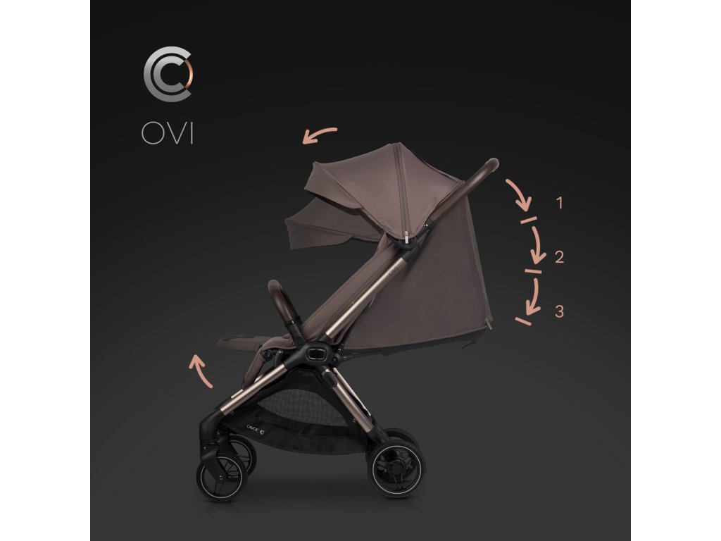 A CAVOE OVI rendelkezik 3 fokozatú mechanikus háttámlaállítás, amely a következő pozíciókat tartalmazza: teljesen fekvő, félig fekvő és teljesen ülő. Ez a fokozatos beállítás különbözteti meg az OVI-t a versenytársak kabinos babakocsijaitól, amelyek általában kevésbé kényelmes övbeállítással rendelkeznek.