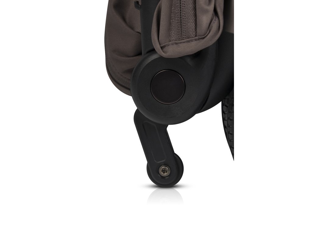 Az összecsukott CAVOE OVI babakocsi bőröndként mozgatható a ... kiegészítő kerék, amelyek összehajtás után jelennek meg. Ezt a praktikus funkciót a szülők nemcsak nyaralások során, hanem a mindennapi helyzetekben is értékelni fogják - például vásárláskor, orvosnál vagy tömegközlekedésen.