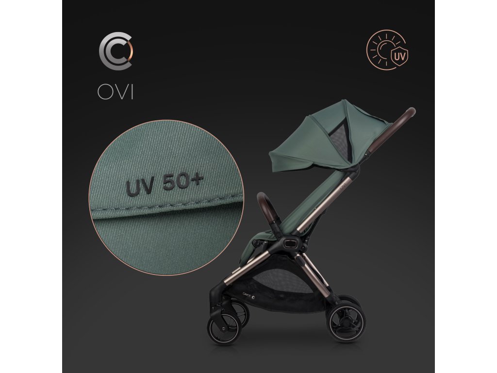 A CAVOE OVI egy termék prémium osztályok, amely még a legigényesebb szülők elvárásait is kielégíti. A keret fém elemei eloxált elegáns barna-pezsgő színben, amely nemcsak luxus megjelenést kölcsönöz a babakocsinak, hanem jelentősen növeli a karcállóságot a hagyományos festékfelületekhez képest.