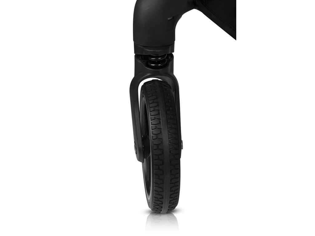 A váz megfelelő kiegyensúlyozásának köszönhetően a babakocsi könnyen a hátsó kerekekre támaszkodik, amit például akkor fog értékelni, amikor egy járdaszegélyen hajt át. Széles első keréknyom Nagyobb manőverezhetőséget biztosít, így a babakocsit könnyen mozgathatod szűk helyeken is, például üzletekben vagy kávézókban.