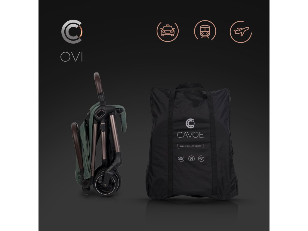 Az összecsukott CAVOE OVI babakocsi bőröndként mozgatható a ... kiegészítő kerék, amelyek összehajtás után jelennek meg. Ezt a praktikus funkciót a szülők nemcsak nyaralások során, hanem a mindennapi helyzetekben is értékelni fogják - például vásárláskor, orvosnál vagy tömegközlekedésen.