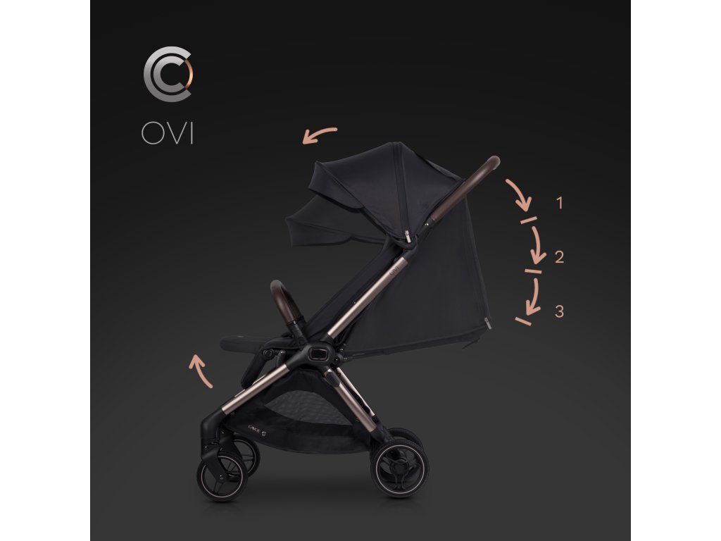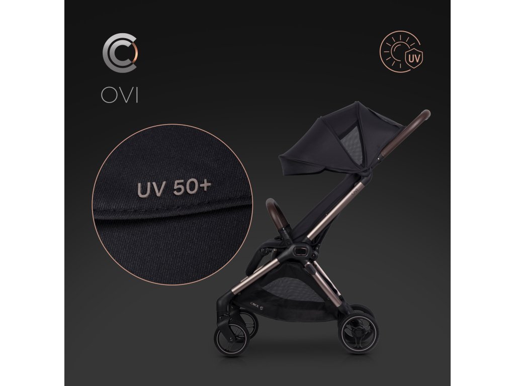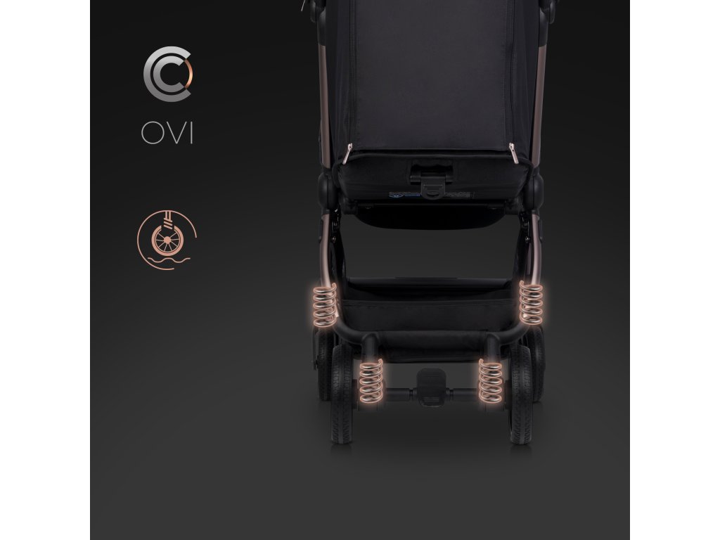 A CAVOE OVI egy termék prémium osztályok, amely még a legigényesebb szülők elvárásait is kielégíti. A keret fém elemei eloxált elegáns barna-pezsgő színben, amely nemcsak luxus megjelenést kölcsönöz a babakocsinak, hanem jelentősen növeli a karcállóságot a hagyományos festékfelületekhez képest.