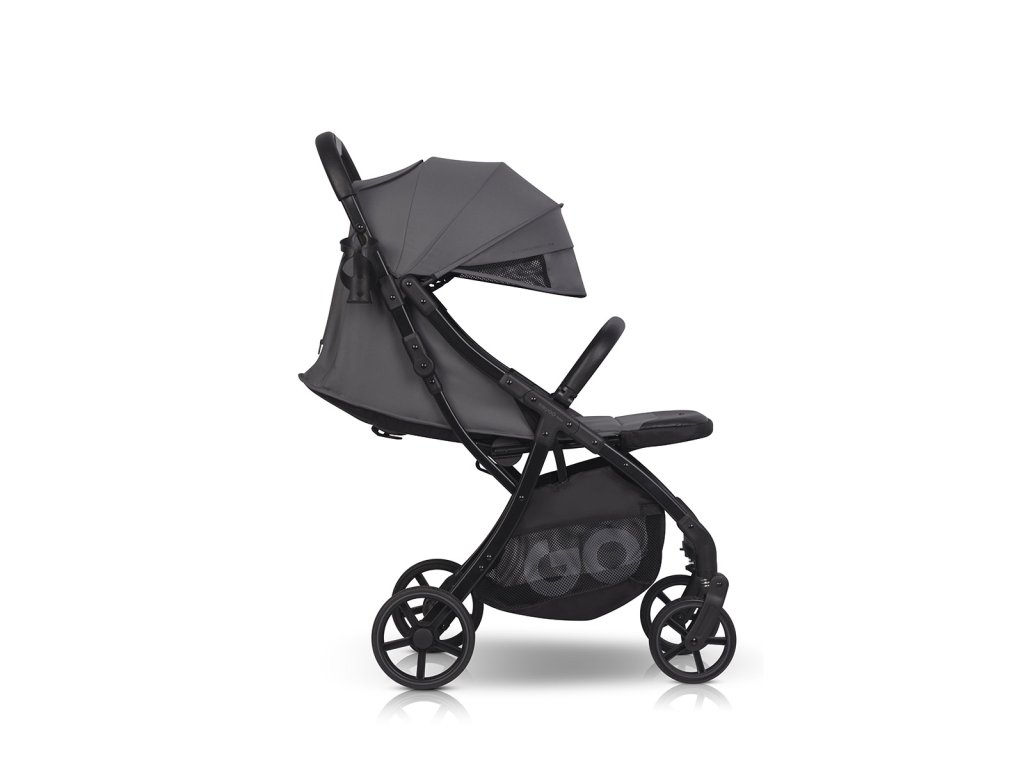 - Kényelmes beállítás: A babakocsi 3 fokozatú mechanikus háttámla-állítással (ülő, fekvő, félig fekvő) és állítható lábtartóval rendelkezik, így a gyermek egész napos kényelmet biztosít.