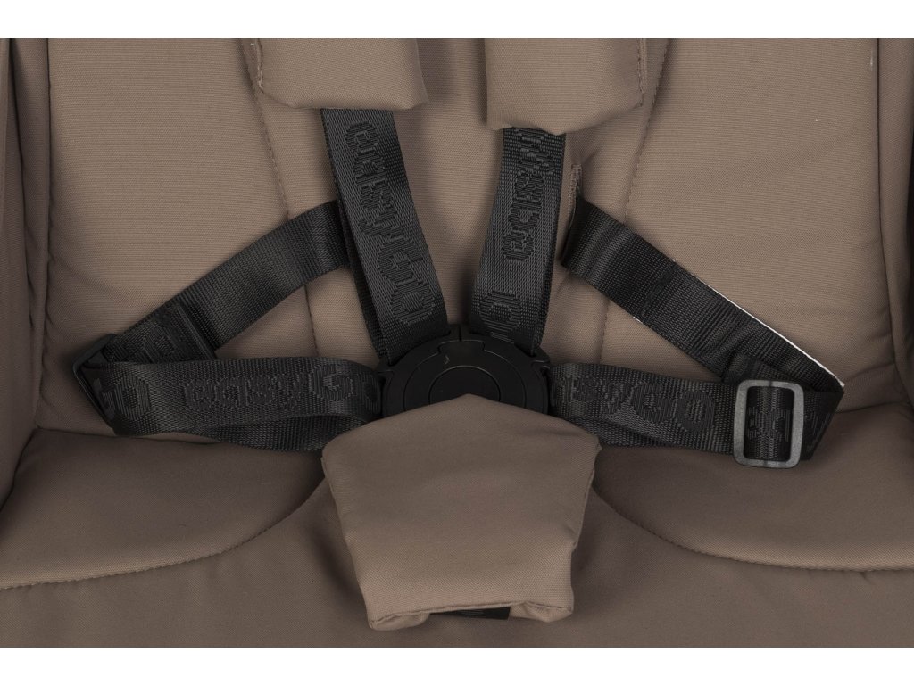 - Biztonság: A babakocsi 5 pontos biztonsági övvel van felszerelve, és egy fékkel rendelkezik, amely könnyen kezelhető még szandálban vagy papucsban is.