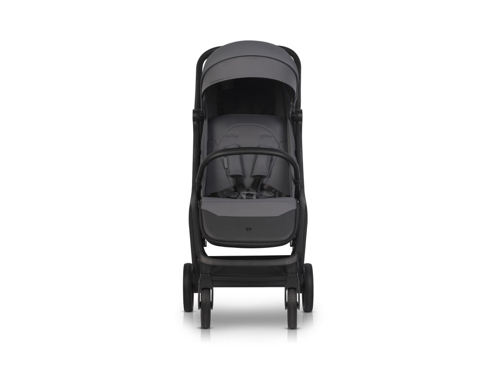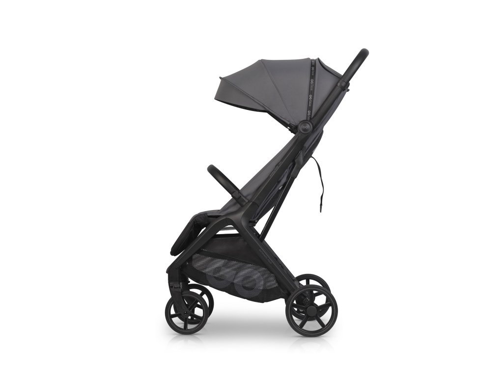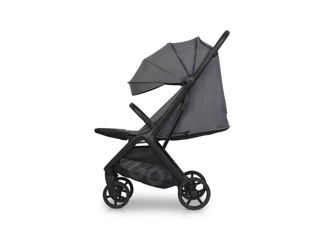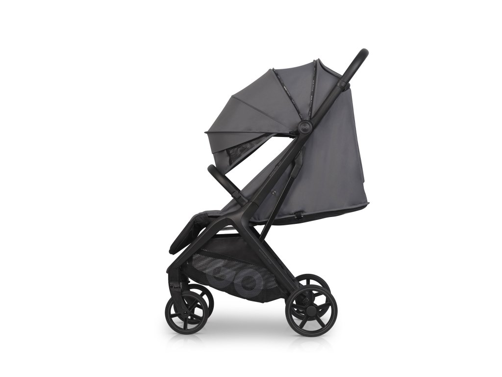Tartós és stílusos kialakítás: A babakocsi váza műanyaggal bevont alumínium profilokból készült, ami növeli a karcolásokkal és a korrózióval szembeni ellenállást. A matt fekete fém elemeknek és az eko bőrnek köszönhetően a babakocsi modern és sportos megjelenésű.