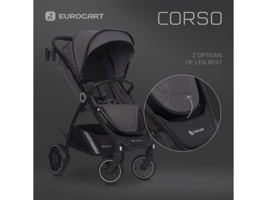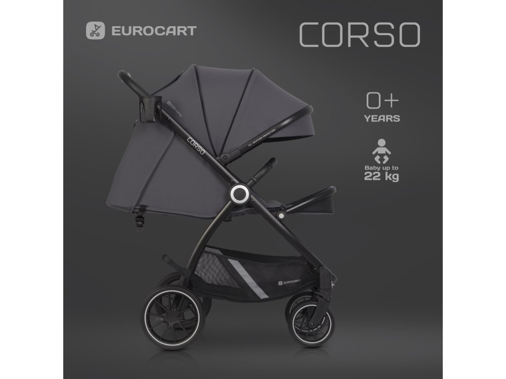 Az Euro-Cart Corso sport babakocsi ideális választás azoknak a szülőknek, akik tágas és megbízható babakocsit keresnek 22 kg-ig terjedő súlyú gyermekeik számára. Ez a babakocsi maximális kényelmet és biztonságot nyújt a teljes használati időszak alatt.