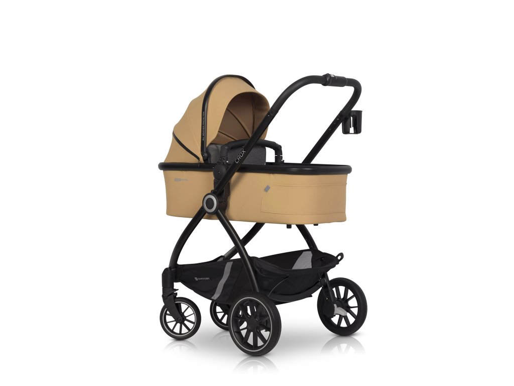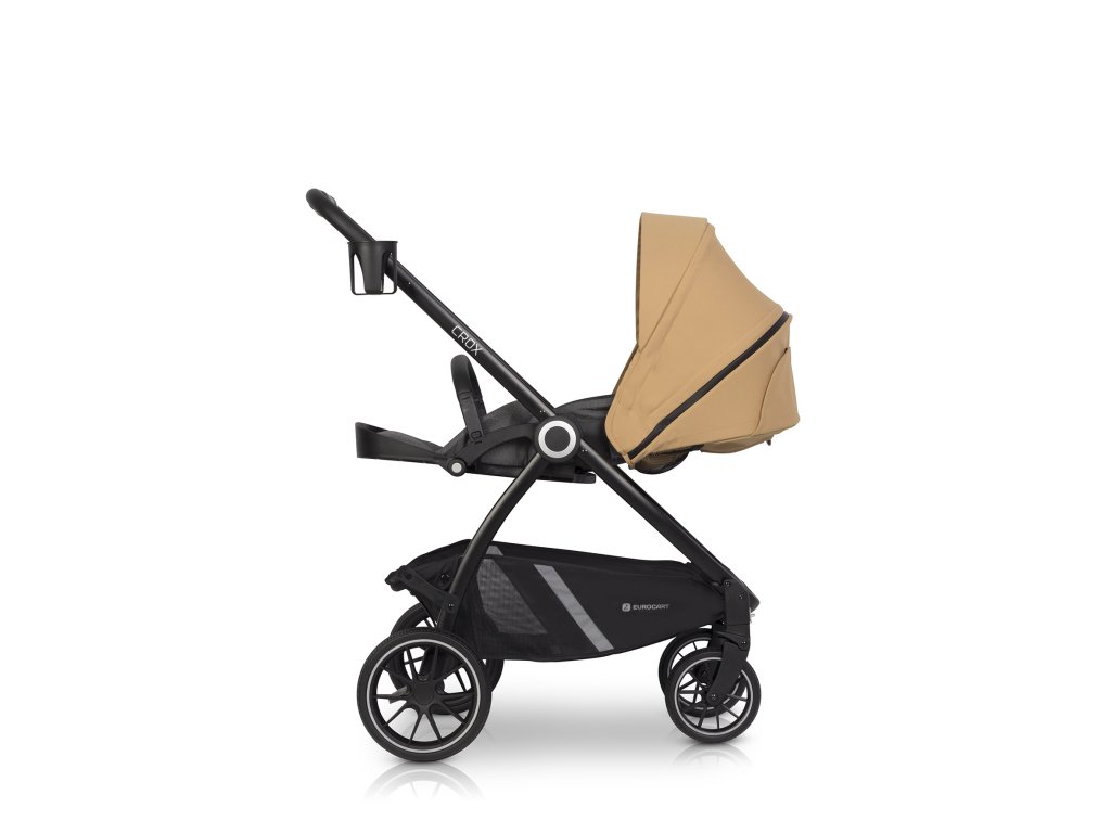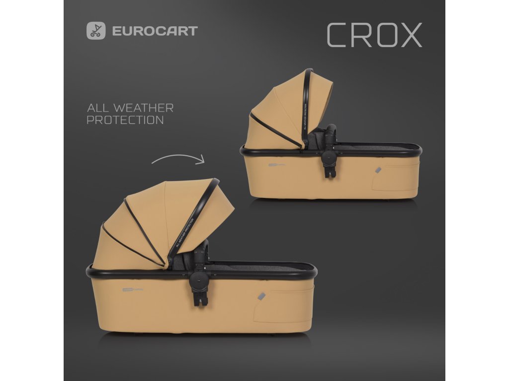 Rugalmasság és sokoldalúság: Az Euro-Cart Crox babakocsit a modern szülők igényeinek kielégítésére tervezték. Külön sportbabakocsiként is megvásárolható, felhajtható üléssel, amely előre vagy hátrafelé is rögzíthető. Még nagyobb sokoldalúság érdekében egy nagyméretű, kényelmes mózeskosár is vásárolható, így 2 az 1-ben szettet hozhat létre.