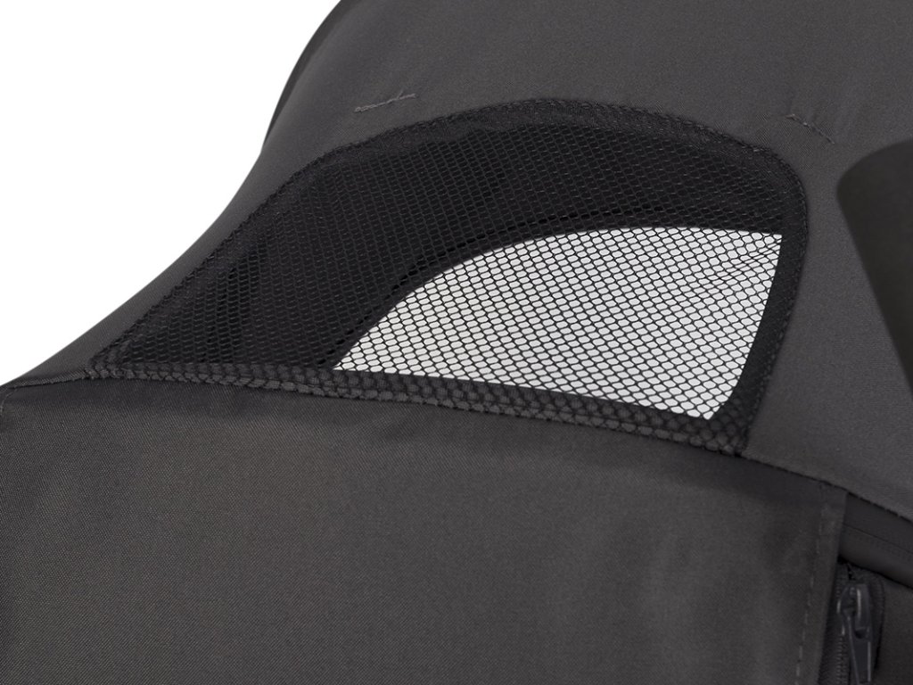 - Kényelmes ülés: A puha ülés a babakocsi vázára van feszítve, ami növeli a kényelmet és kiküszöböli a kemény felületeket.