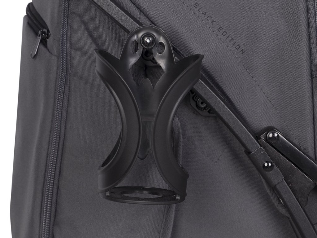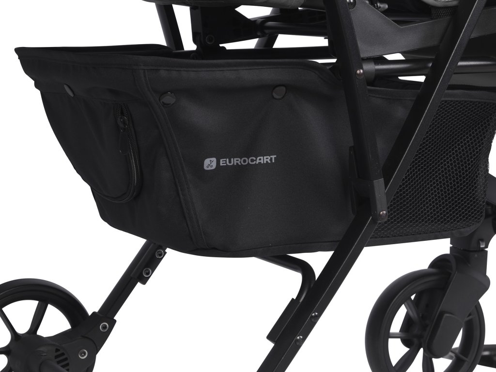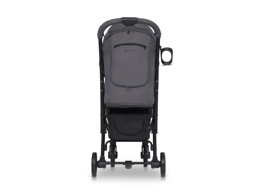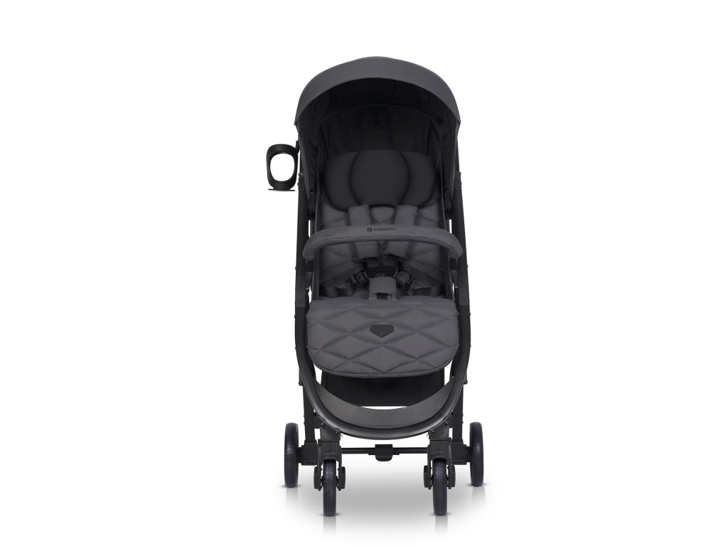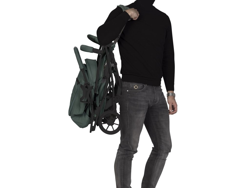 - Könnyű kezelhetőség: Forgatható első kerekek zárható opcióval, az összecsukott babakocsi automatikus rögzítése és számos egyéb praktikus funkció, például palacktartó és szállítótáska.