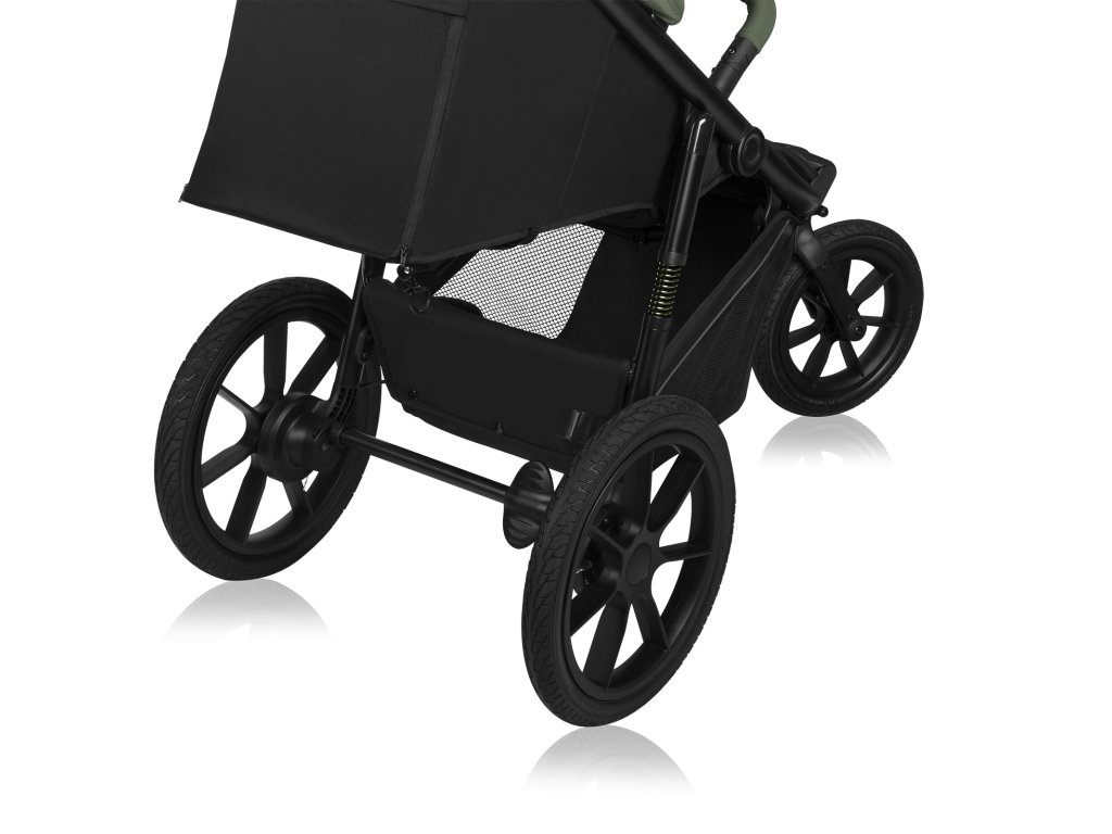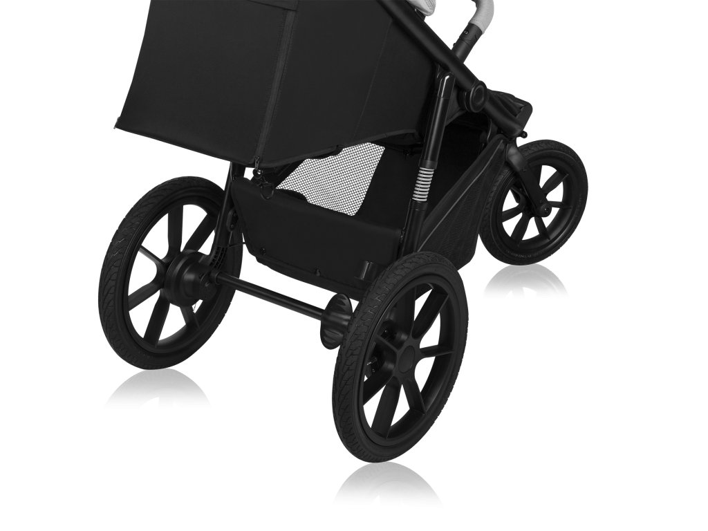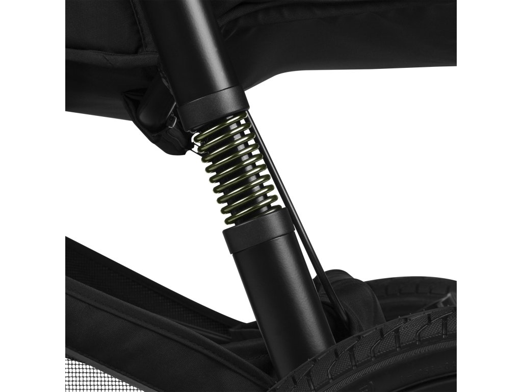 A babakocsi elölről hátrafelé teljesen rugózott, így jól bírja az akadályokat. A babakocsi vázának kényelmes párnázata lehetővé teszi a szabad járást még az igényesebb terepen, a strandon vagy sportolás közben is.