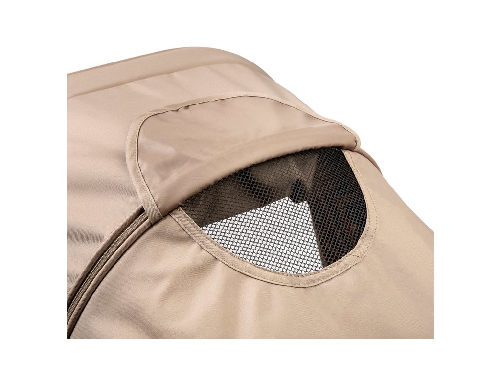 - Egyszerű összecsukás: A babakocsi könnyen és gyorsan összecsukható kompakt méretűre (80x60x43 cm), ami megkönnyíti a szállítást és tárolást.