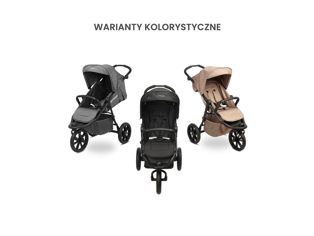 A Caretero Lima babakocsi ideális választás azoknak a szülőknek, akik szeretik az aktív életmódot, és olyan babakocsira van szükségük, amely nehezebb terepen is megállja a helyét. Háromkerekű kialakításának és nagy, 30 cm átmérőjű habkerekének köszönhetően a Lima rendkívül fordulékony és könnyen irányítható, amit különösen a természetben és a városban tett séták során fogsz értékelni.