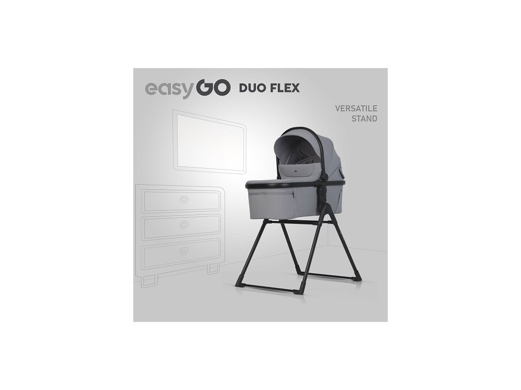 Ikrek számára elérhető opció: A Duoflex ideális ikreket váró szülők számára. Egyszerűen rendelje meg a két mózeskosárral és két üléssel ellátott változatot. A babakocsi két teljes méretű mózeskosarat vagy két autósülést tud befogadni, amelyek könnyen beszerelhetők.