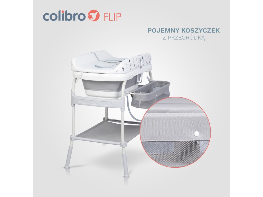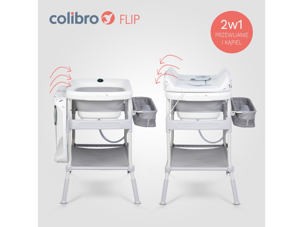 Colibro FLIP képvisel forradalmi 2 az 1-ben megoldás, amely egyesíti a függvényt babafürdő a praktikus pelenkázóasztal egyetlen eszközben. Ez az innovatív termék megkönnyíti a baba napi gondozását, miközben értékes helyet takarít meg otthonában.