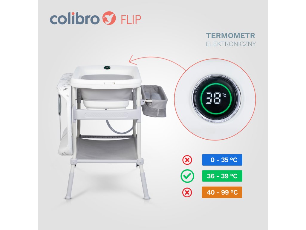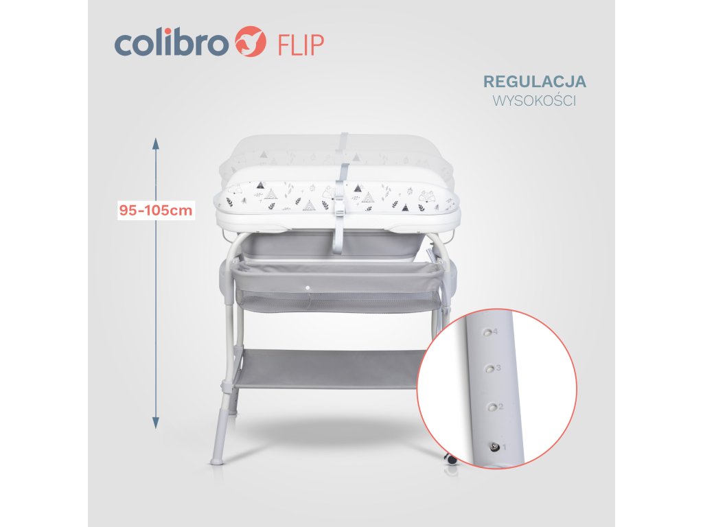 Colibro FLIP nem csak egy termék – hanem átfogó megoldás gyermeke mindennapi gondozásához. Egyesíti modern design, átgondolt jellemzők a kiváló minőségű egyetlen eszközben, amely végig kiszolgálja Önt, amikor babájának fürdetésre és pelenkázóasztalra van szüksége.