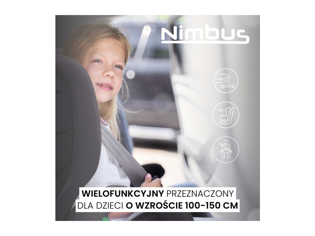 A Nimbus egy 2 az 1-ben autósülés, amelyet 100-150 cm magas (általában 4-12 éves kornak megfelelő) gyermekek számára terveztek. A levehető háttámlának köszönhetően az autósülés később ülésmagasítóként is használható idősebb gyermekek számára. |