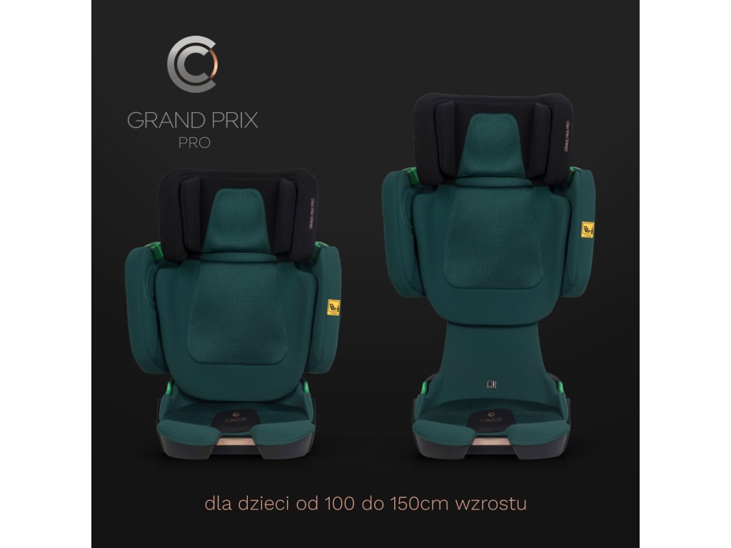 A Cavoe Grand Prix Pro autósülést úgy tervezték, hogy maximális biztonságot és kényelmet biztosítson a 100 és 150 cm közötti (15-36 kg) magasságú gyermekek számára. Megfelel a legújabb európai I-SIZE szabványnak, amely az egyetlen érvényes homologizáció az autósülésekre az EU-ban 2023. szeptember 1-jétől.