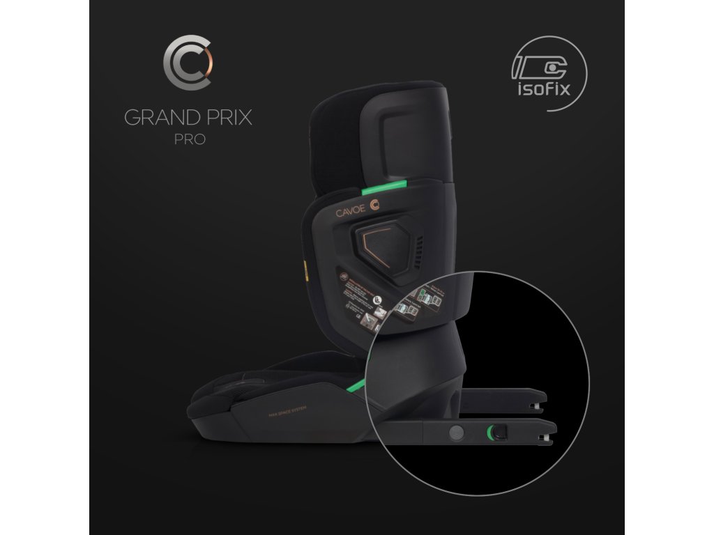 A Cavoe Grand Prix Pro autósülést úgy tervezték, hogy maximális biztonságot és kényelmet biztosítson a 100 és 150 cm közötti (15-36 kg) magasságú gyermekek számára. Megfelel a legújabb európai I-SIZE szabványnak, amely az egyetlen érvényes homologizáció az autósülésekre az EU-ban 2023. szeptember 1-jétől.