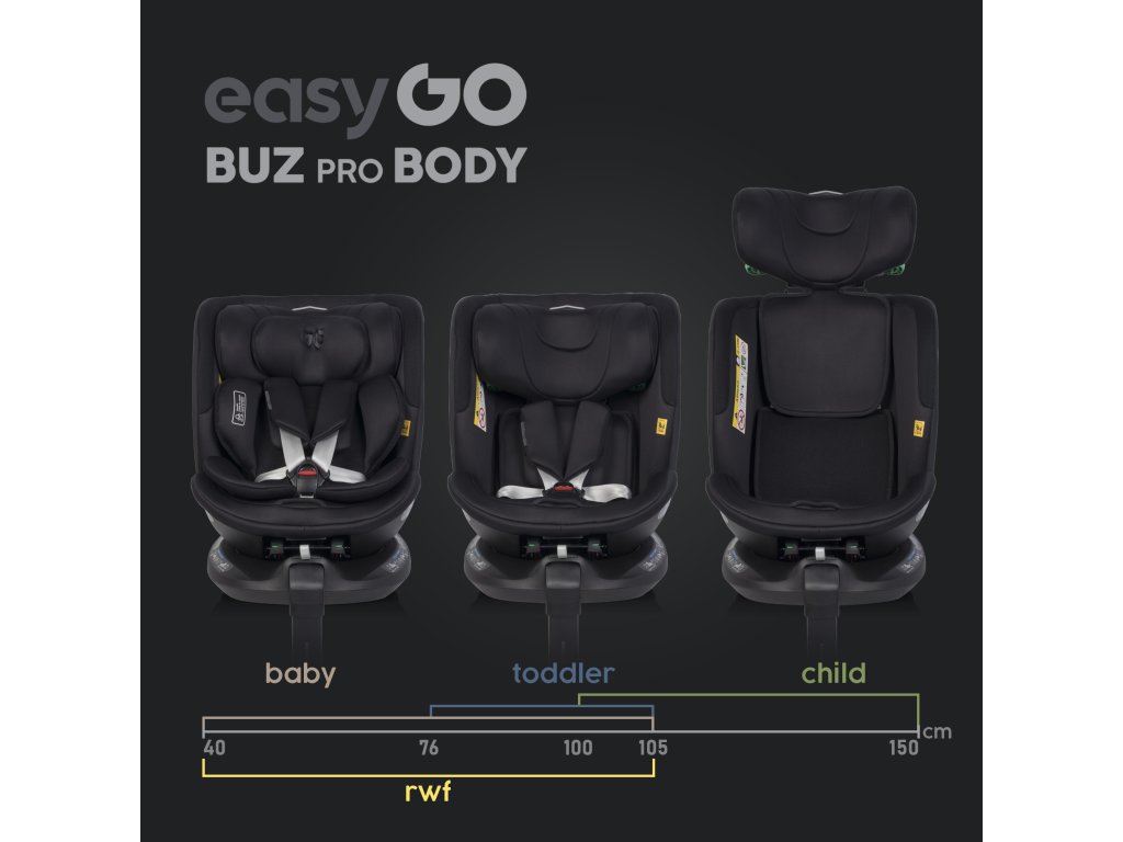Két autósülés, egy talp: A szett tartalmazza az EasyGo Buz Pro (40-87 cm) és az EasyGo Buz Pro Body (40-150 cm) autósüléseket egy forgó ISOFIX talppal, ami költséghatékonyabb, mint két különálló, saját talppal rendelkező ülés megvásárlása.