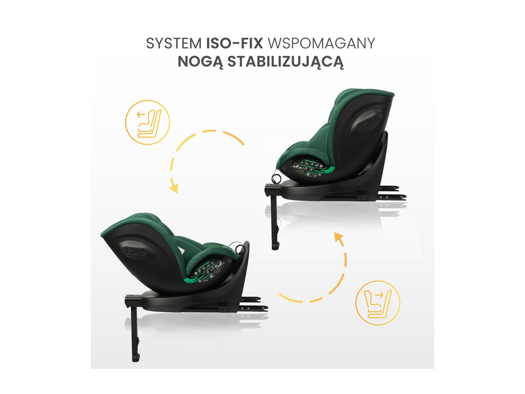 ISOFIX rendszer támasztólábbal: A stabilizáló láb és az ISOFIX rendszer gyors és egyszerű telepítést biztosít, amely maximális biztonságot és stabilitást garantál.