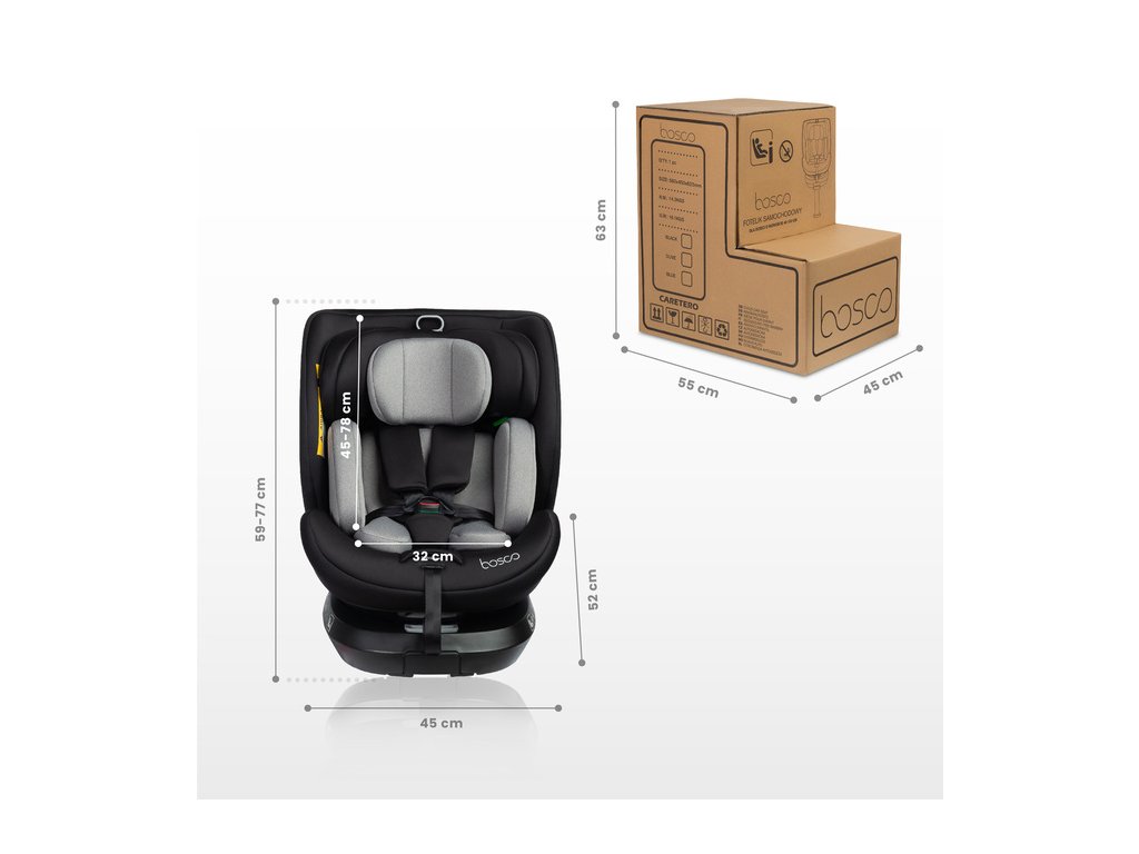 CARETERO BOSCO ISOFIX Autós Gyerekülés I-SIZE 40-150 CM 360 fokban elforgatható BLACK