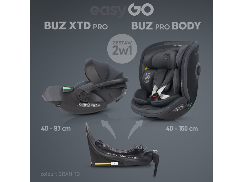 EasyGo Buz Xtd Pro és Buz Pro Body 2 az 1-ben autósülés-szett – Teljes megoldás születéstől 150 cm-es magasságig