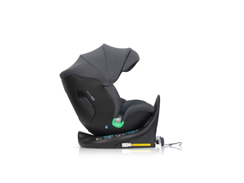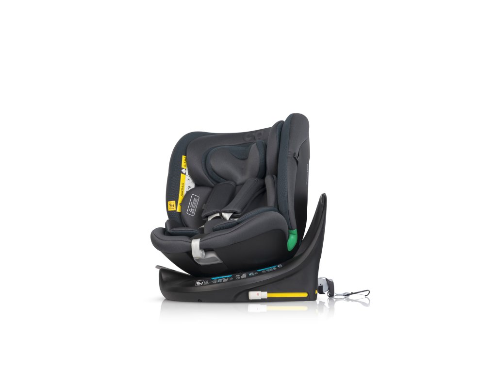 - ISOFIX forgóalap: Az integrált, 360°-ban forgó talp megkönnyíti a gyermek ülésbe helyezését. Az ülés oldalirányban állítható a kényelmes ülési pozíció vagy szünetek alatt.