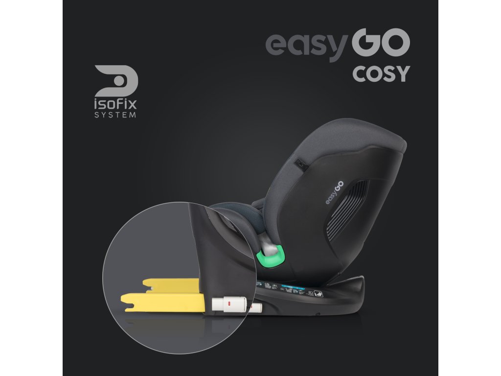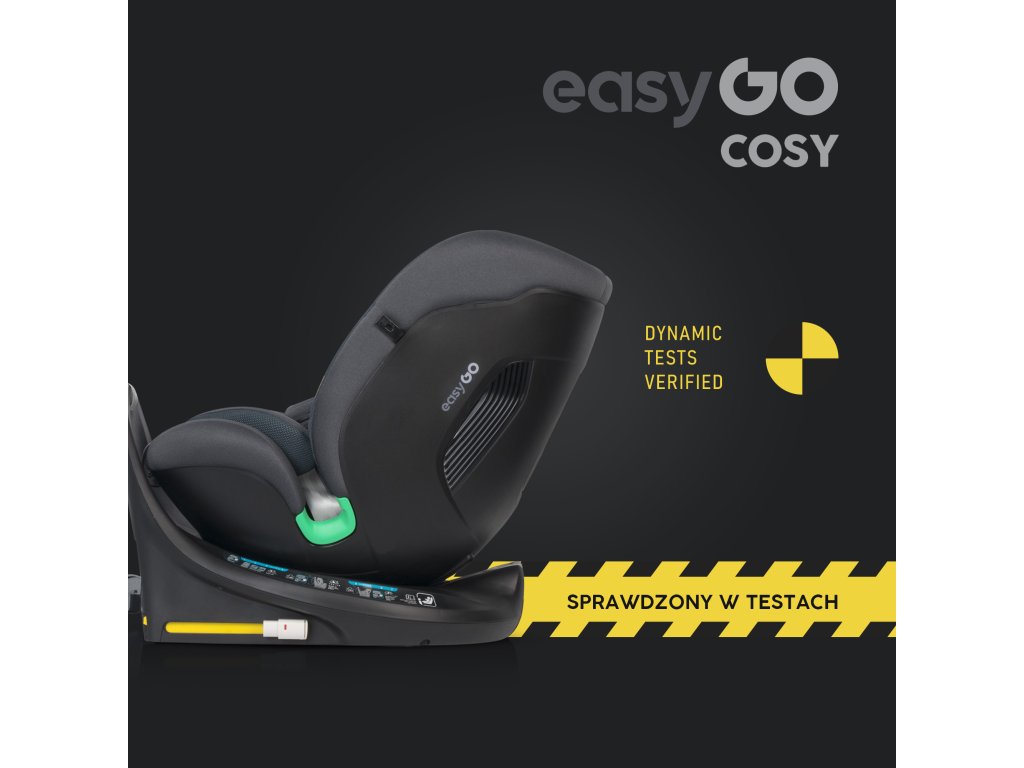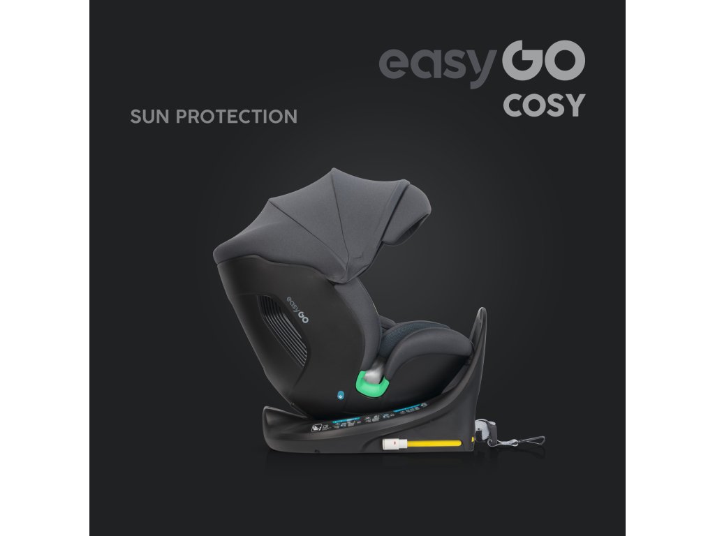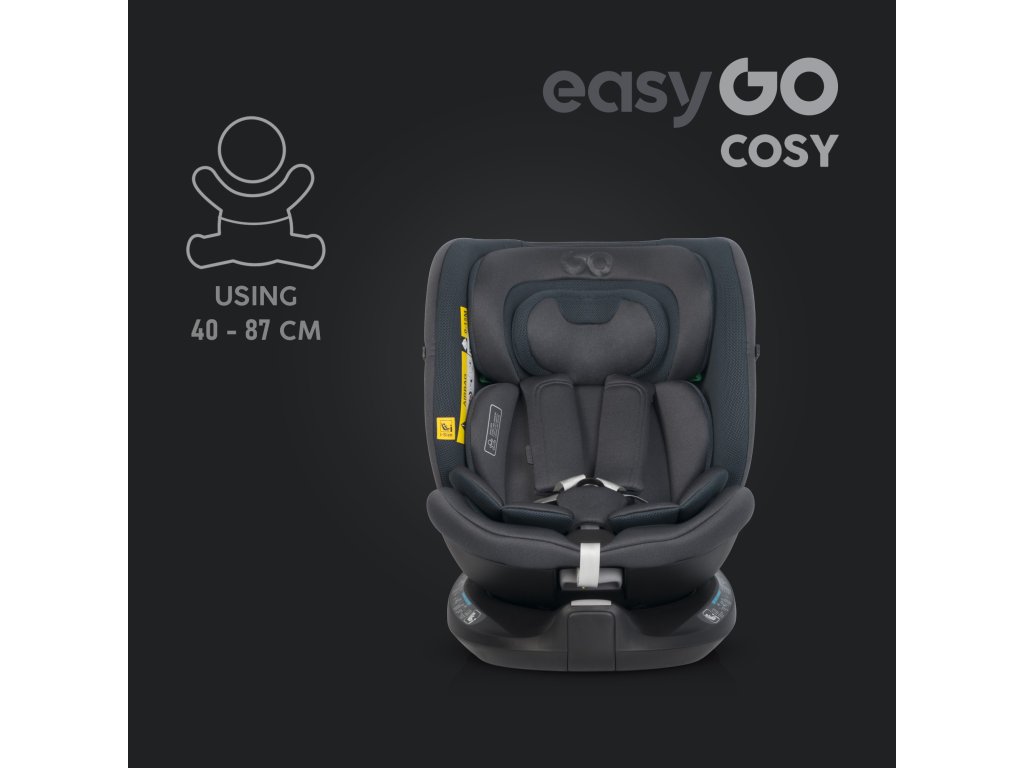 Bemutatkozik az EasyGo Cosy autósülés, amely egyesíti a következőket: biztonság, kényelem és stílus Gyermekének születéstől 36 kg-ig. Ez az autósülés 40-150 cm magas gyermekek számára készült, és számos olyan funkciót kínál, amelyek biztosítják a kényelmes és biztonságos utazást.