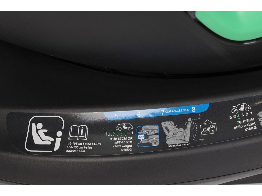 - ISOFIX forgóalap: Az integrált, 360°-ban forgó talp megkönnyíti a gyermek ülésbe helyezését. Az ülés oldalirányban állítható a kényelmes ülési pozíció vagy szünetek alatt.