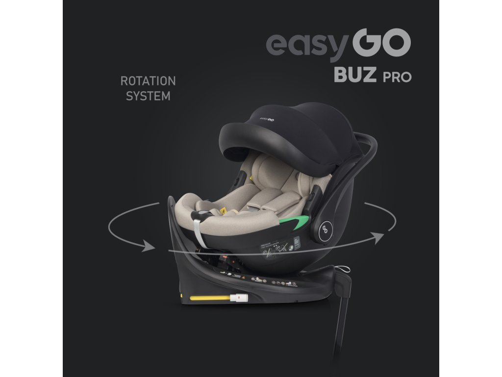 - Bővítési lehetőségMiután gyermeke kinövte ezt az ülést, ugyanarra az ISOFIX forgótalpra rögzíthet egy másik EasyGo BUZ PRO BODY ülést, amely legfeljebb 150 cm magas gyermekek számára készült, így egy költséghatékony 2 az 1-ben szettet hozhat létre.