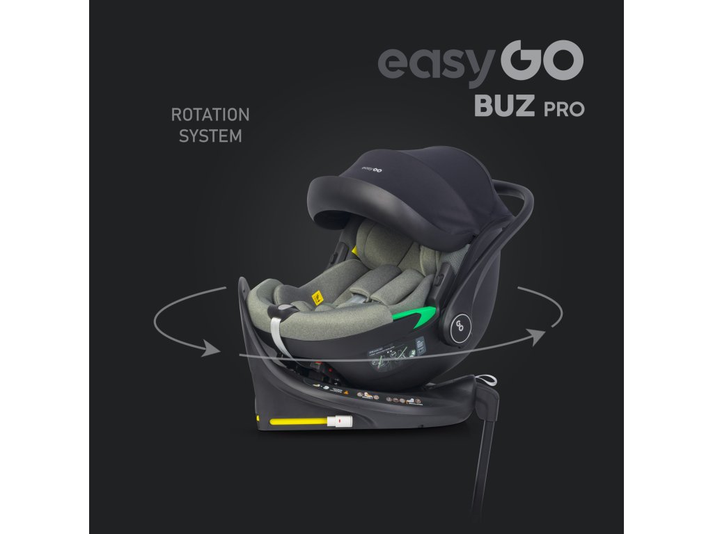 - Bővítési lehetőségMiután gyermeke kinövte ezt az ülést, ugyanarra az ISOFIX forgótalpra rögzíthet egy másik EasyGo BUZ PRO BODY ülést, amely legfeljebb 150 cm magas gyermekek számára készült, így egy költséghatékony 2 az 1-ben szettet hozhat létre.