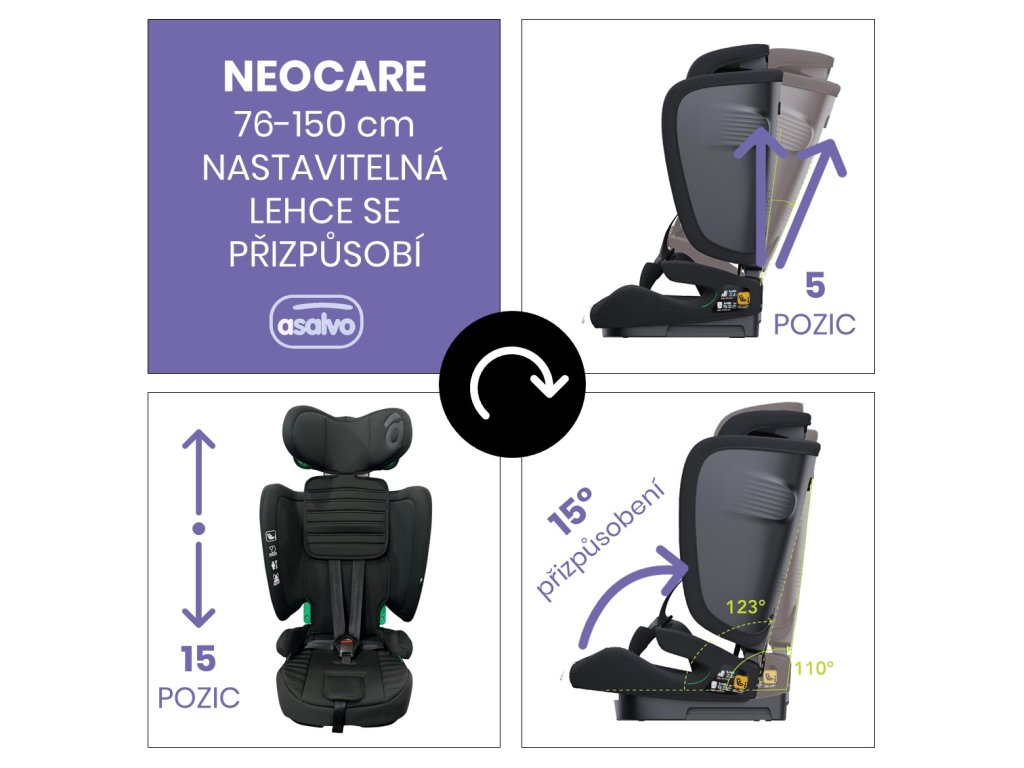 Asalvo NEOCARE iSize összecsukható autósülés 76-150, fekete