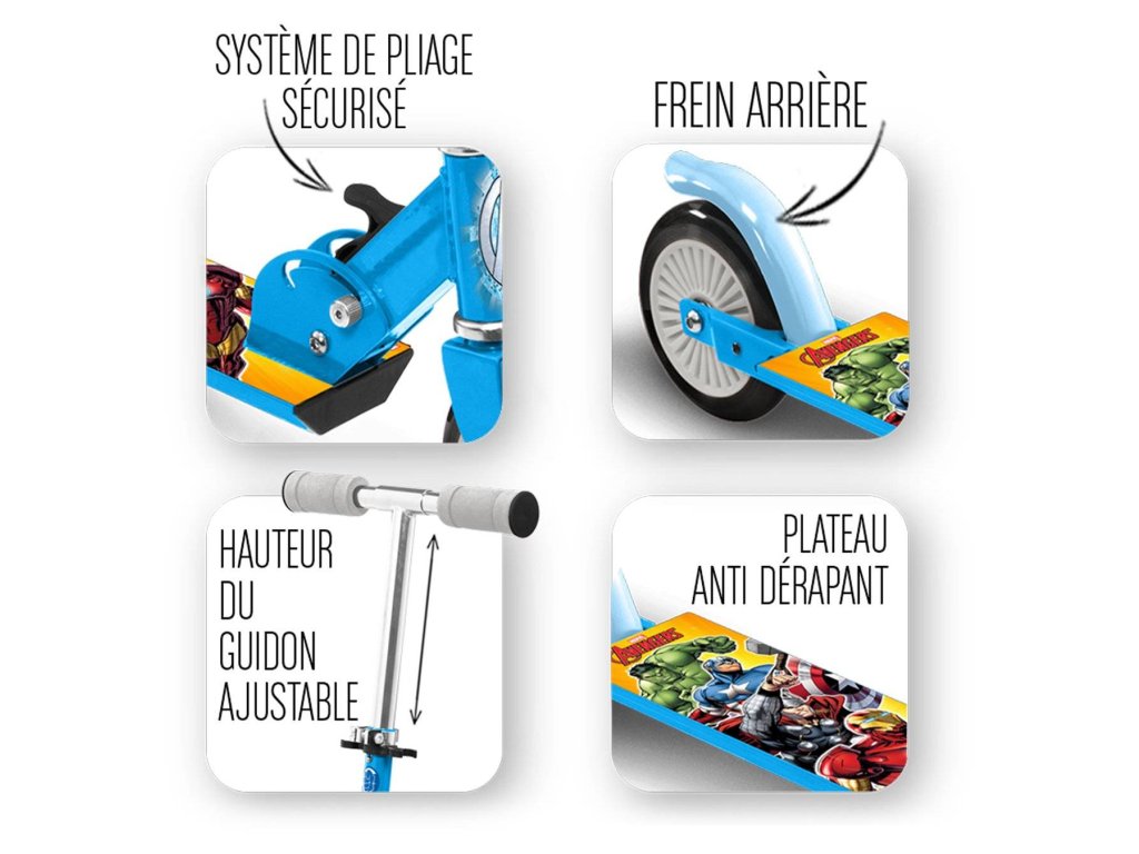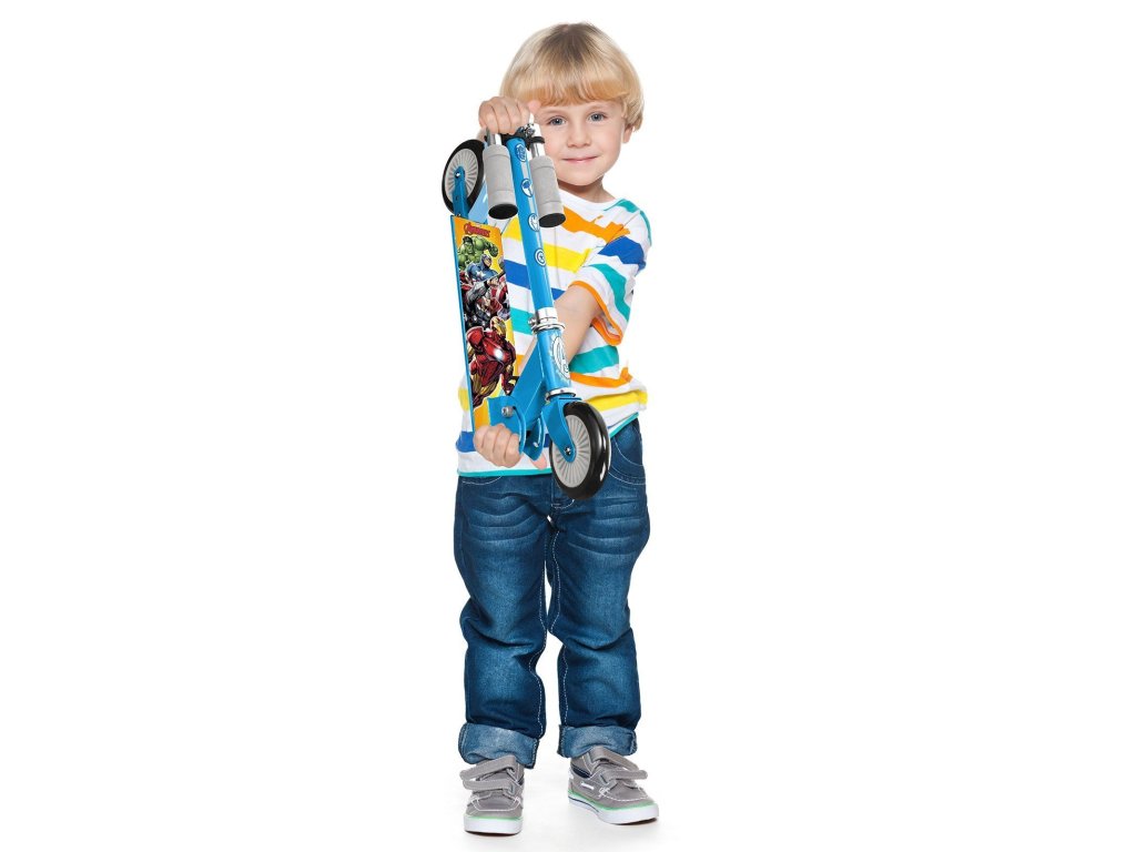 Nagy robogó fiúknak kedvenc témával. A robogó könnyen összecsukható, beleértve a fogantyúkat is, így nem foglal sok helyet szállítás közben. A menettulajdonságok szempontjából tetszetős a ľ használatakönnyű alumínium váz és lábfék. A robogón a kormány magasságának állítási lehetősége van, ennek köszönhetően a gyermek magasságához állítható, így az utazás a lehető legkényelmesebb lesz gyermeke számára. További előnye a kellemes habanyagból készült puha kormánymarkolat és a csúszásgátló futófelület. A poliuretán kerekek megnövekednek rezgéscsillapító egyenetlen útfelületen történő vezetéskor a kiváló minőségű ABEC-7 csapágyak biztosítják a sima futást. A mese minden rajongója imádni fogja a robogót ezekkel a nagyszerű tulajdonságokkal.