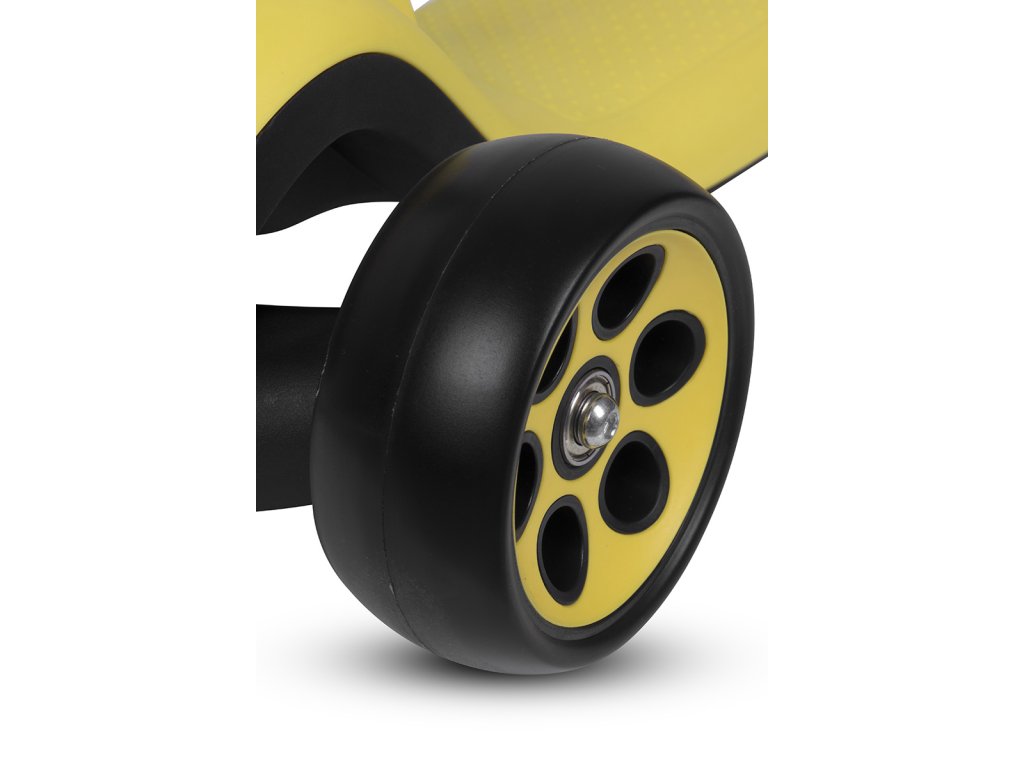 - Stabil kerekek: A széles poliuretán elasztomer csapágykerekek nem hajlanak el a gyermek súlya alatt, és nagyon kopásállóak.