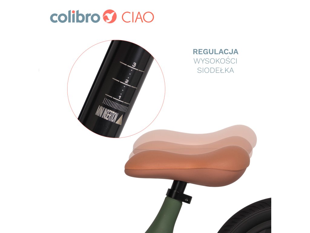 A COLIBRO Ciao gyerek futóbicikli tökéletes eszköz minden gyermek számára, aki klasszikus kerékpáron szeretne megtanulni vezetni. Ez a modell a pedálos kerékpározásra való átállás megkönnyítésére szolgál, a lábbal való rugózási lehetőségnek köszönhetően, ami biztonságérzetet ad a gyermeknek és elősegíti az egyensúly fejlődését. A kerékpár nélkülözhetetlen társ lesz a mindennapi sétákon.