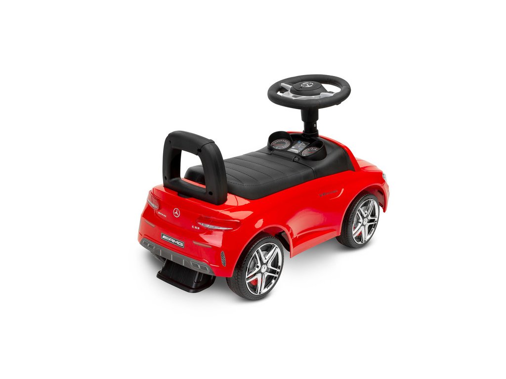 A TOYZ Mercedes AMG C63-a igazi öröm a legkisebbek számára. A Mercedes márkaengedély garantálja a valósághű megjelenést és a részletekre való nagy odafigyelést. Jár hozzá egy kormánykerék kürttel és dallamokkal, valamint egy tárolóhely az ülés alatt. A gyermek nagyon jól fogja érezni magát a felülős játékkal, és fejleszti mozgáskoordinációját.