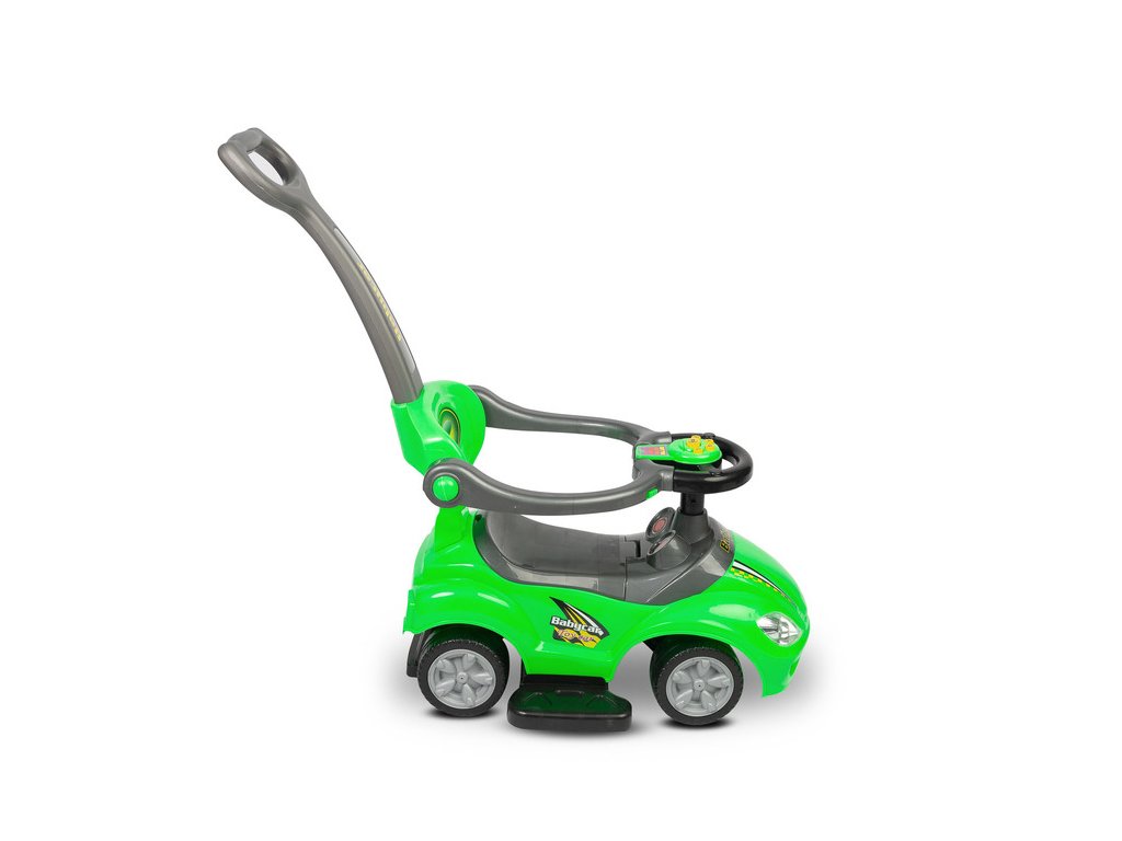 A versenyautó stílusú bébitaxi azonnal lenyűgözi a sebesség minden kis rajongóját. A modell hangpanellel van felszerelve, amely autentikus élményt nyújt a versenyzős játékhoz és támogatja a gyermek érzékszervi fejlődését. A műszerfal imitáció és a vonzó színes kivitel minden utazásból izgalmas kalandot varázsol.